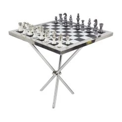 Best Sale π€© Silver Aluminum Contemporary Game Set Table, 4″ x 25″ x 22″ by Ivory and Iris β