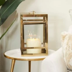 Best deal π White Iron Modern Candle Holder Lantern, 16″ x 9″ x 9″ by Ivory and Iris β¨