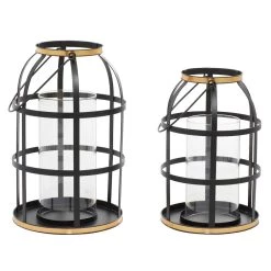 Wholesale π Set of 2″ Black Metal Industrial Lantern , 14″, 12″ by Ivory and Iris π