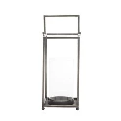 Brand new π Black Iron Modern Candle Holder Lantern, 16″ x 6″ x 6″ by Ivory and Iris π