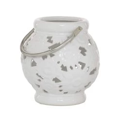 Deals ❤️ White Ceramic Contemporary Candle Holder Lantern, 8″ x 8″ x 8″ by Ivory and Iris ⌛