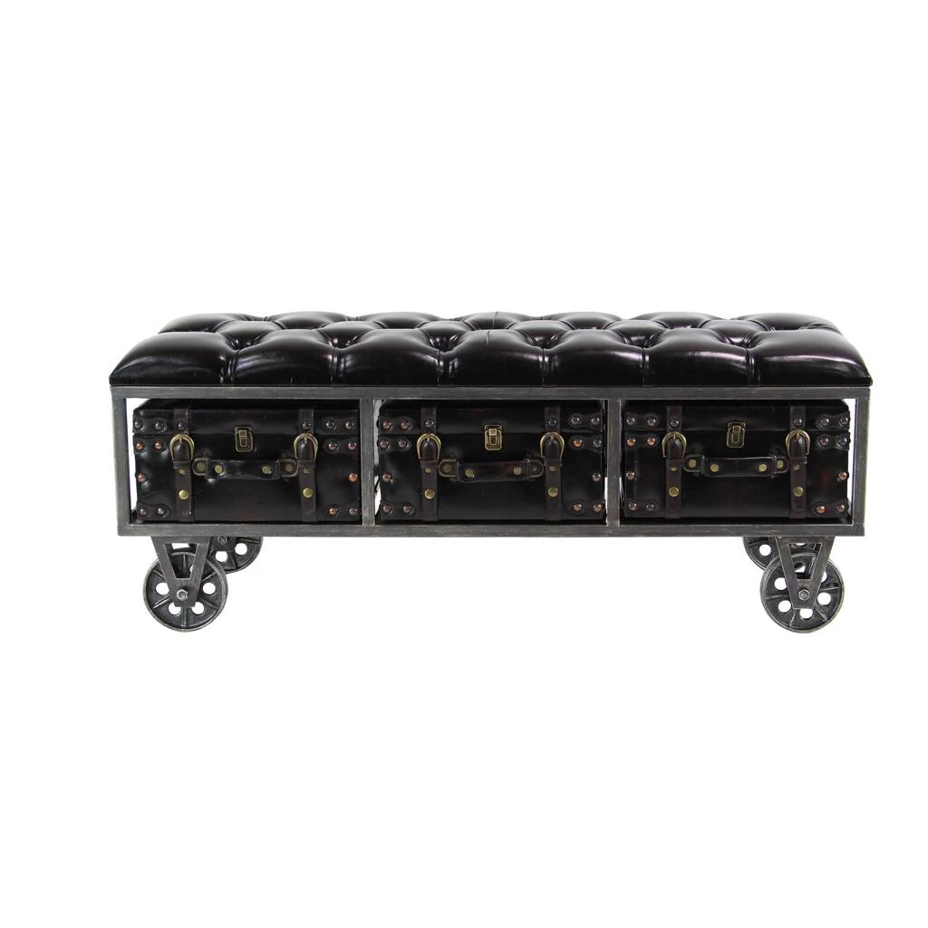 Coupon βοΈ Industrial Rectangular Black Faux Leather and Wood Storage Bench, 19″ x 47″ x 16″ by Ivory and Iris π₯