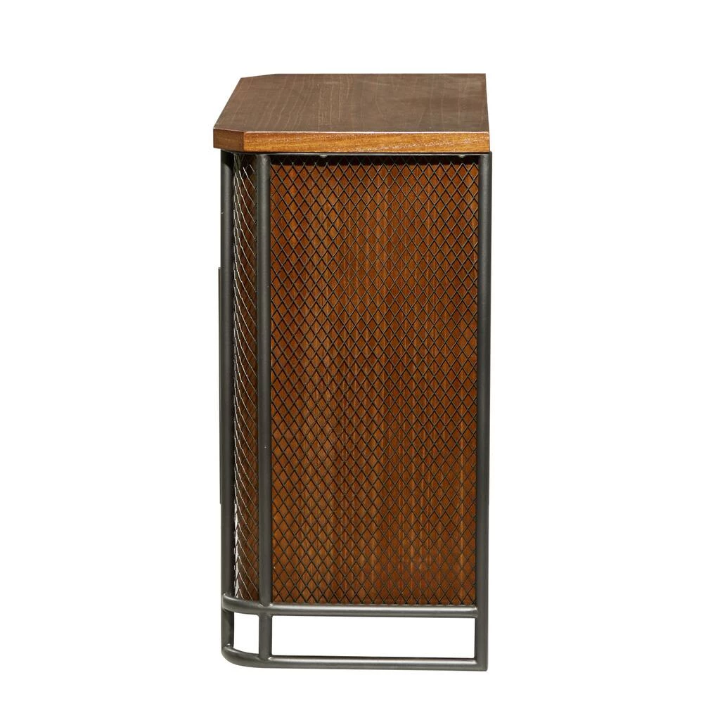 Useful and elegant, cabinets are more than just a place to store clutter and place a lamp. Add a unique stylish storage to your living room, hallway, or bedroom with this cabinet. With its stunning metallic characteristic, this cabinet is best to display in the entryway, living room, or bedroom of an industrial-themed home. This industrial accent cabinet features interior space with 28.25βL x 13.25βW x 24.50βH measurements. This item comes shipped in 1 carton. Suitable for indoor use only. Maximum weight limit is 100 lbs., each shelf can hold up to 30 lbs. This accent furniture features 2 inner shelves with 0.43″ and 1.25″ thickness and 30 lbs. capacity. Designed with an industrial theme.