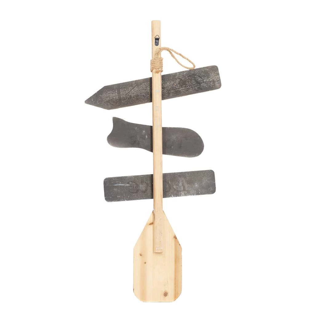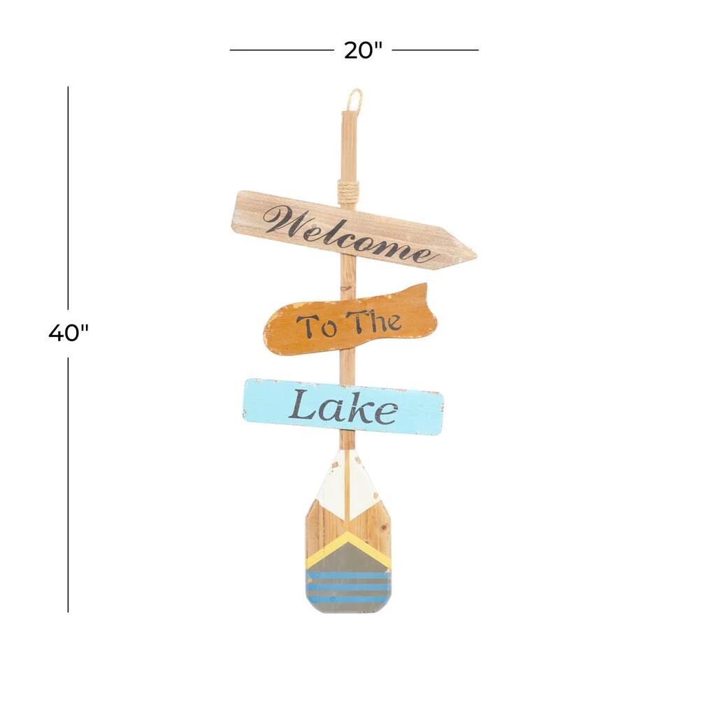 Accessorize your living space with this unique wooden wall decor. This amazing home accent piece features distressed multicolored wooden oar and three wooden planks with βWelcome To The Lakeβ typography. This wall decoration suits coastal styled spaces that crave for stylish home design. Hang this amazing piece anywhere you want and bring a relaxing and feel-good atmosphere to your home. Hardware on back allows for easy hanging. Suitable for indoor use only. “Welcome To The Lakeβ signage. This item comes shipped in one carton.