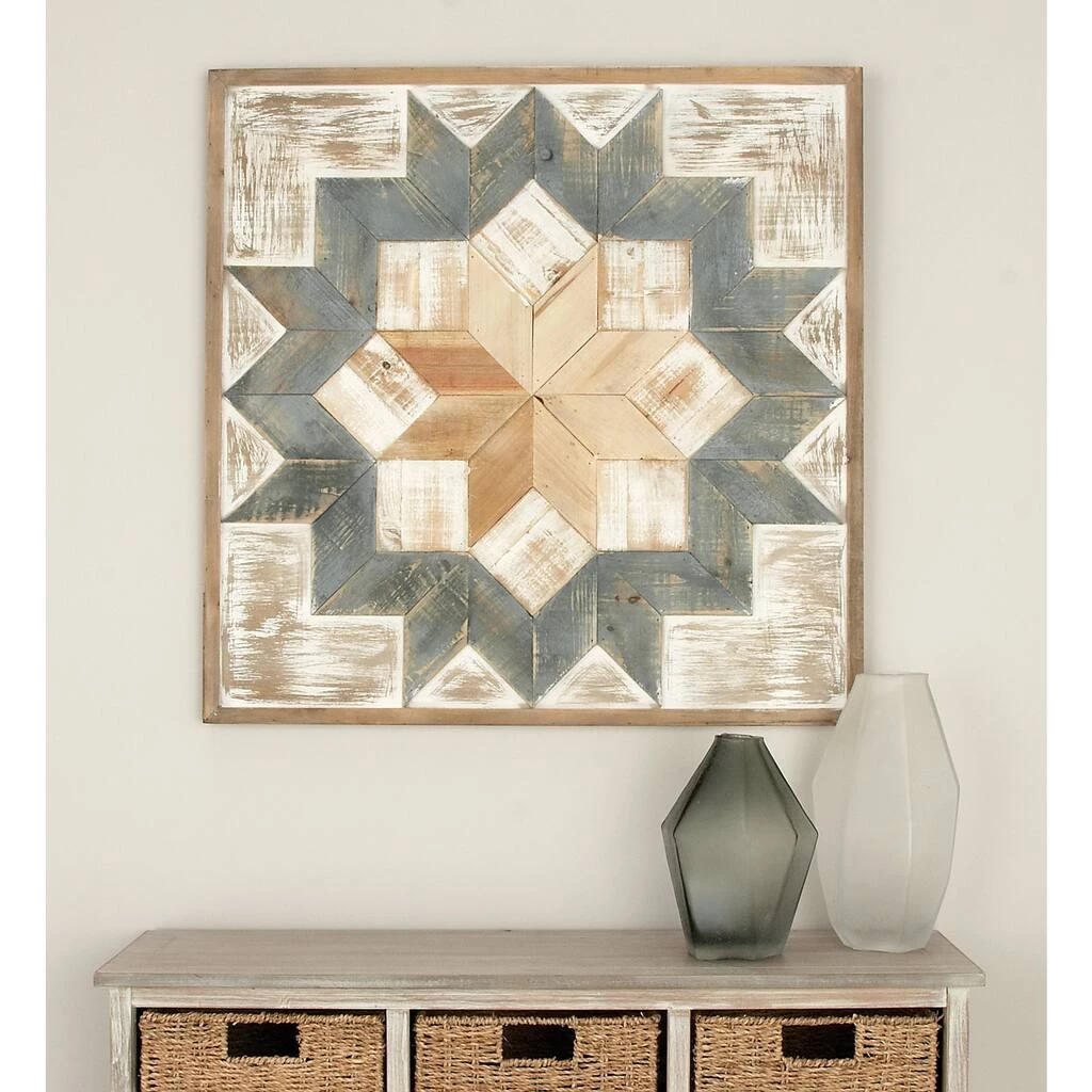 You don’t need to take a day off to decorate and make your walls look great. Make your home exceptional in an hour with this wooden wall Decor. This accent piece features a square frame in distressed brown and gray finishes with whitewashing; it also flaunts radial and geometric patterns. This multicolored wall accent suits farmhouse designed spaces that crave for stylish home decoration. Hang this amazing piece in your home to bring a relaxing and feel-good atmosphere. Ready to hang with 2 hanging hardware at both sides. Suitable for indoor use only. This item comes shipped in one carton.