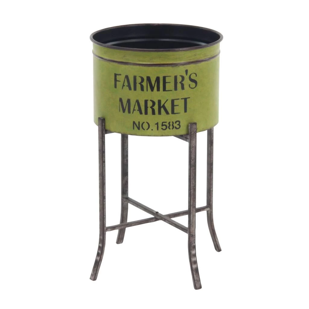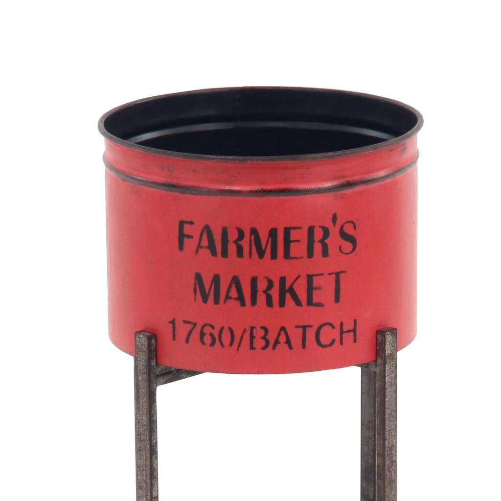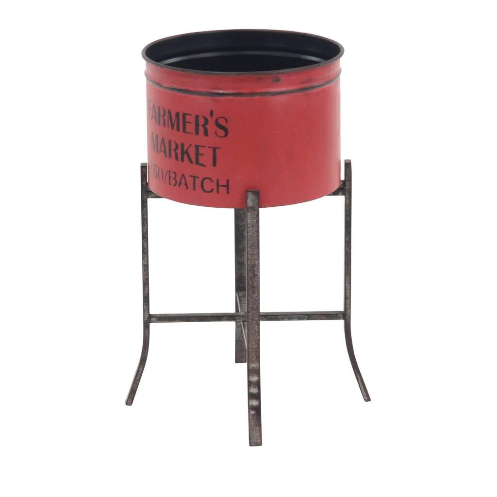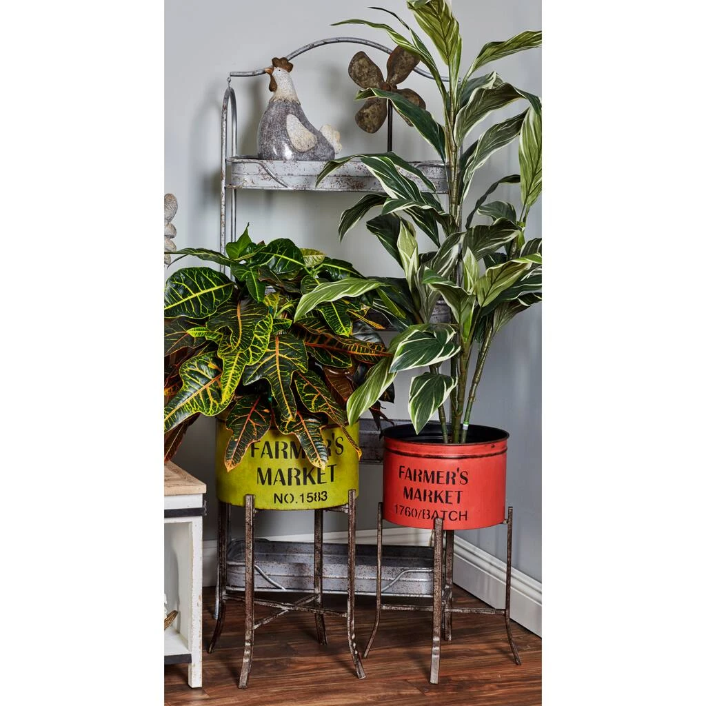 This Multicolored Metal Farmhouse Planter Set brings tranquility to your space by allowing you to fill them with plants, hence it promotes wellness and creates an immediate feeling of relaxation. These decorative planters are sure to add bundles of charm to your home. Beautifully detailed, they feature cylindrical pots in distressed blue, green, and red finishes with metal stands in brass finish. These planters are made out of iron with solid construction, offering durability and stability. Jazz up farmhouse themed spaces using this set of charming accent pieces that are ideal for both indoor and outdoor use. Place them together on your patio or any room of your house, or use them separately to decorate multiple spaces.