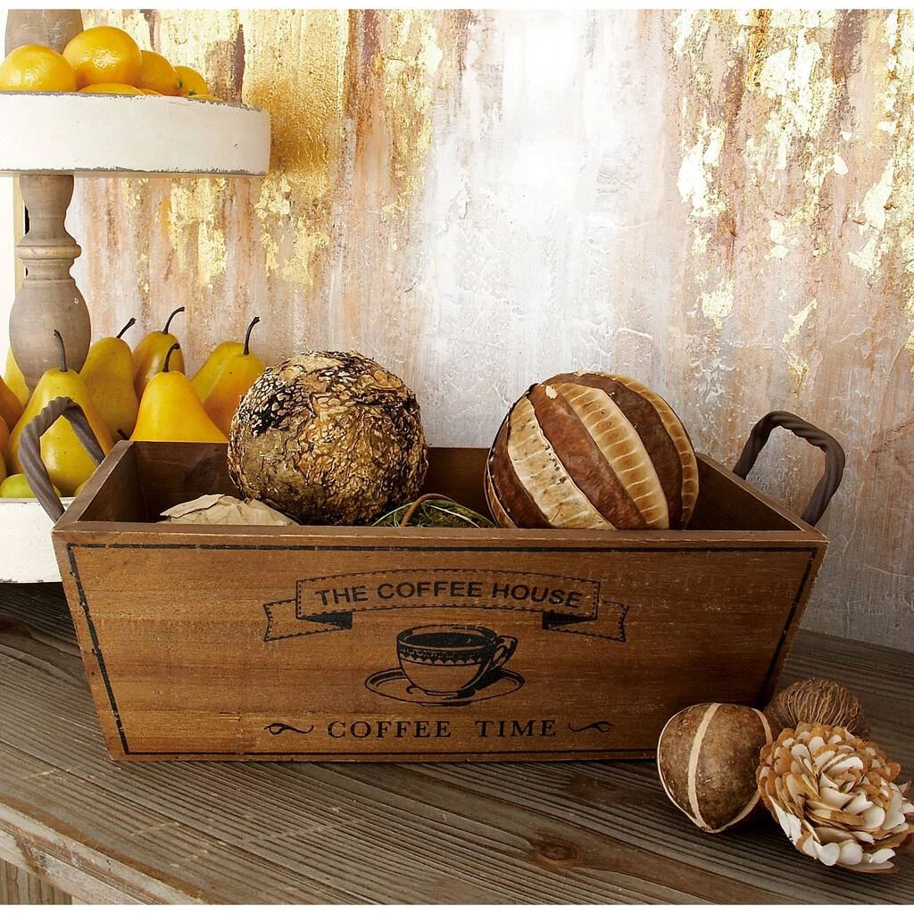 This versatile Natural Brown Wood Farmhouse Tray Set is fun accent piece for your kitchen and other living spaces. These basket trays showcase a coffee cup illustration and “THE COFFEE HOUSE”, “COFFEE TIME” texts. Whether in your kitchen, or on your coffee table, it’s a great way to display and store your favorite things.