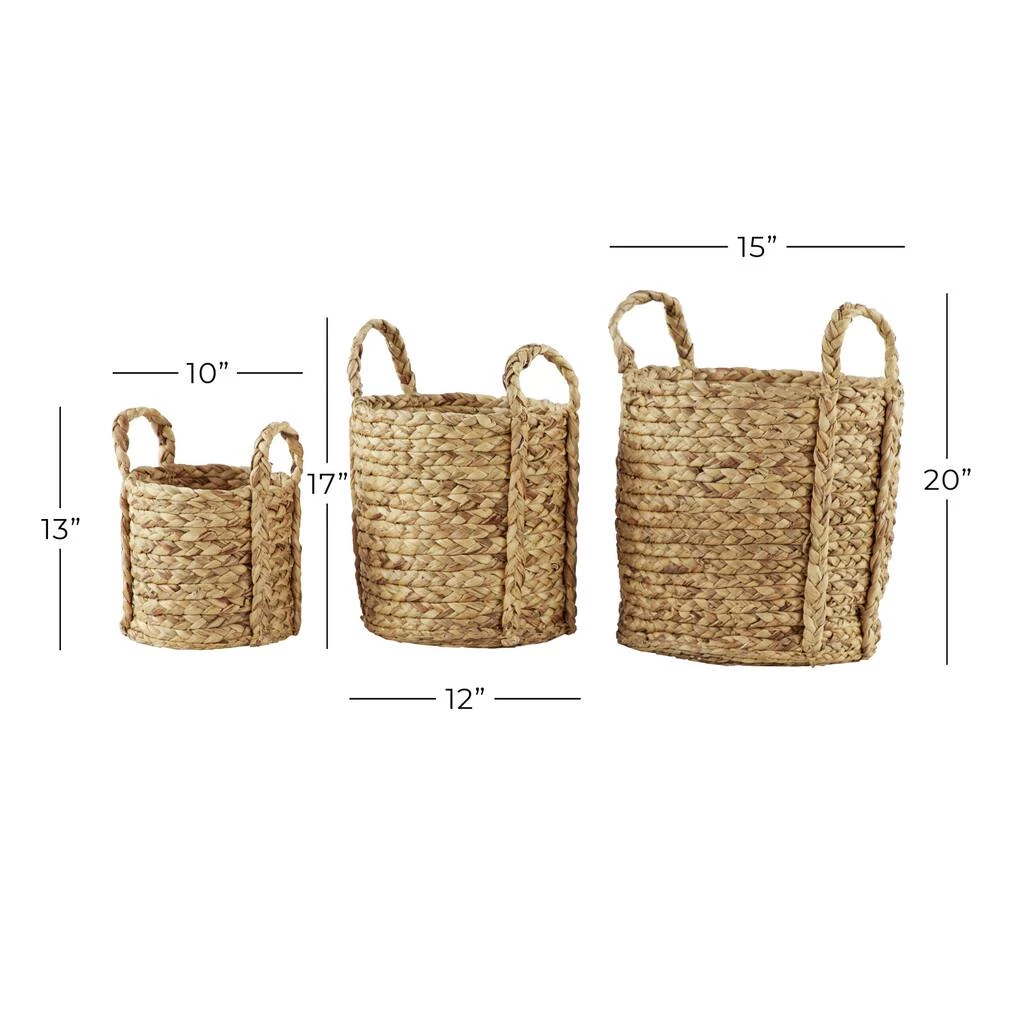 Whether your dΓ©cor style is traditional or boho, this set of 3 versatile round seagrass basket planters brings natural texture and earthy hues to your garden or living room! Handwoven in Vietnam using water hyacinth dried in the sun into sturdy wicker, these planter baskets feature natural wheat beige and light brown hues throughout the thick braided strands. Display your plants beautifully indoors or outside!