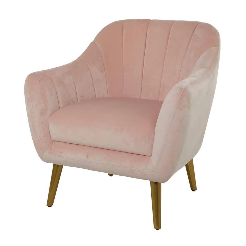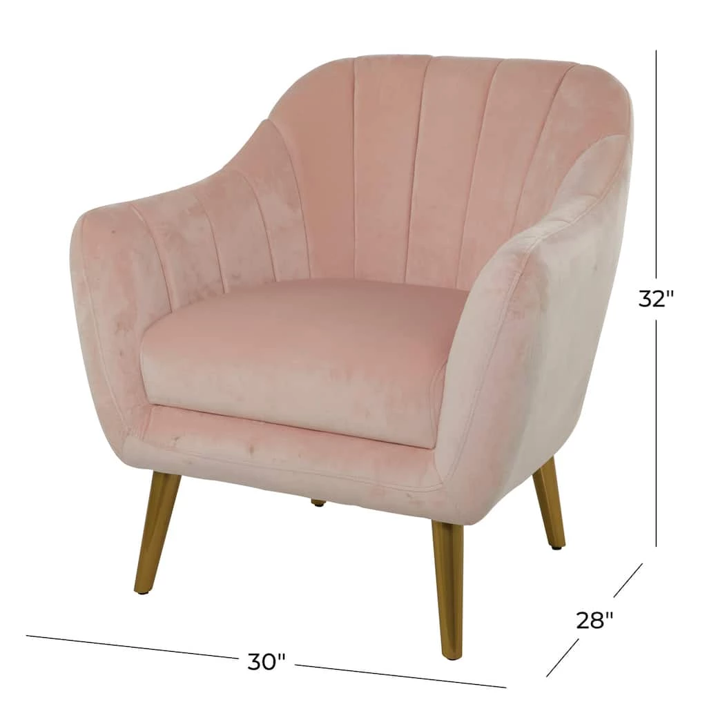 A contemporary style pink accent chair match made in heaven for green toned living spaces with plenty of natural sunlight and stylish white and gold decor pieces. Kick back and relax as you wine down from a long hard day at work. Great for adding additional seating and storage with a charming appeal. Designed with black rubber stoppers at the bottom that prevent scratching off surfaces, as well as sliding around. Item ships in 1 carton. Wipe clean with a dry cloth. Suitable for indoor use. Maximum weight limit is 250 lbs. Contemporary style.