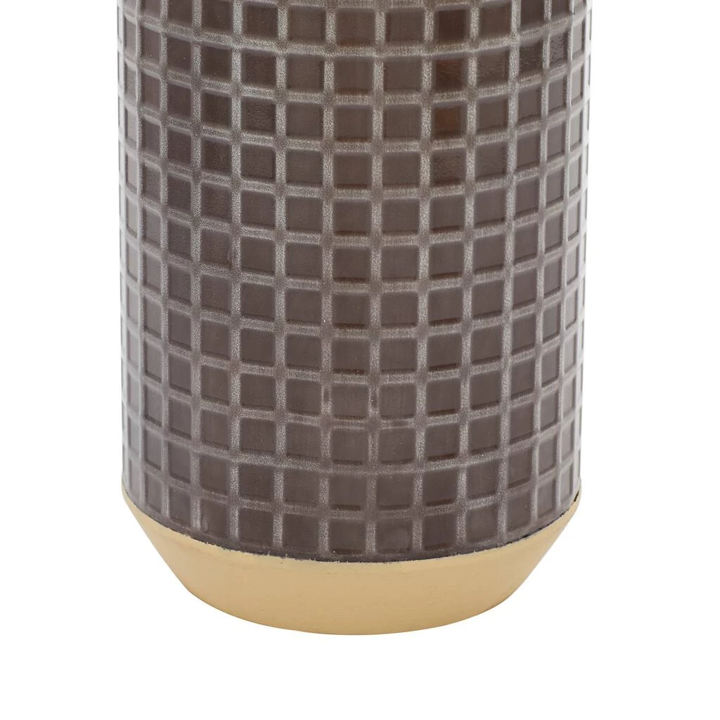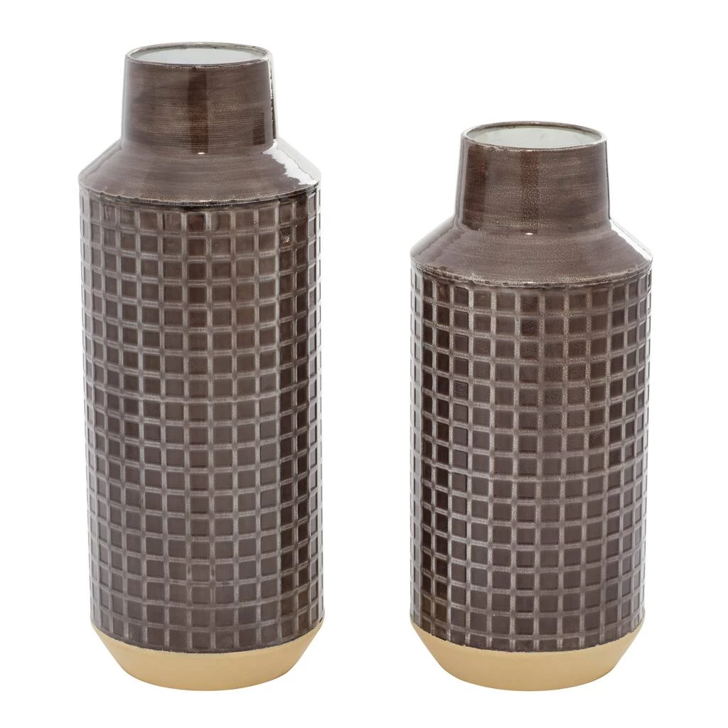 Display these brown vases solo or with tall vase filler against light colored walls for a dynamic effect. Ideal decor that works best in contemporary themed homes. Displayed in your dining or living room, entryways or hallways, this vase is sure to bring charm and joy to any space . This item ships in one carton. Suitable for indoor use only. Each set comes with 2 vases. Tapered neck cylinder vases with 3″ wide rim openings. Contemporary design.