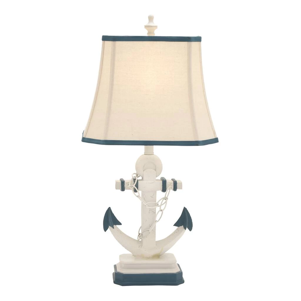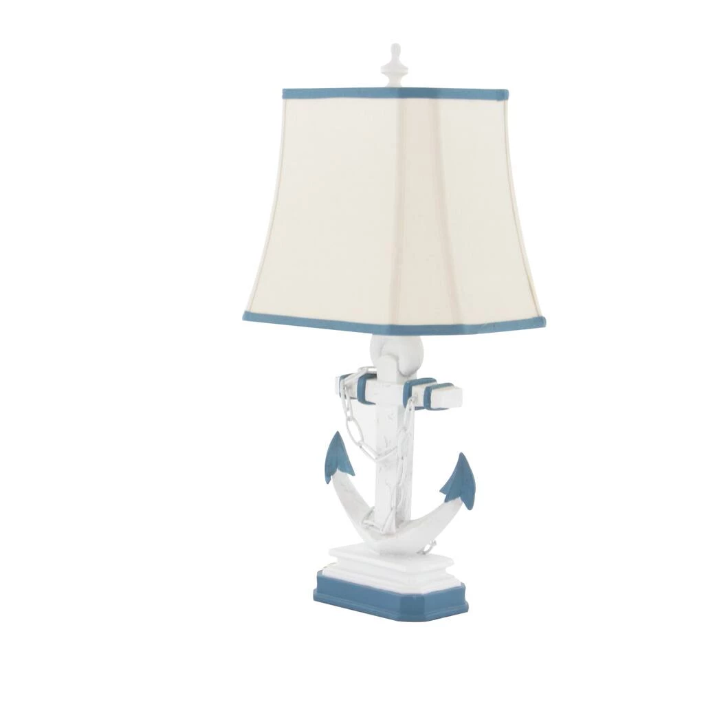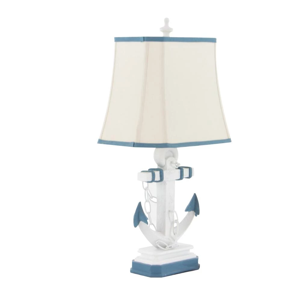Brighten up any room to create a warming atmosphere for you and your guests with this chic table lamp. Make a statement with this unique lamp on mantle, console table or in any living space. Step up your interior design with this striking table lamp that is perfect to display on top of any accent table in your nautical-inspired lobby, living room, reading nook, kitchen, or bedroom. Requires 1 Standard Type A bulb, not included. Cord length is 65 inches. Suitable for indoor use only. Item features a square tapered shade with blue trims and measures 15βL x 11βH.Comes with an on/off switch. Nautical style. This item ships in one carton.