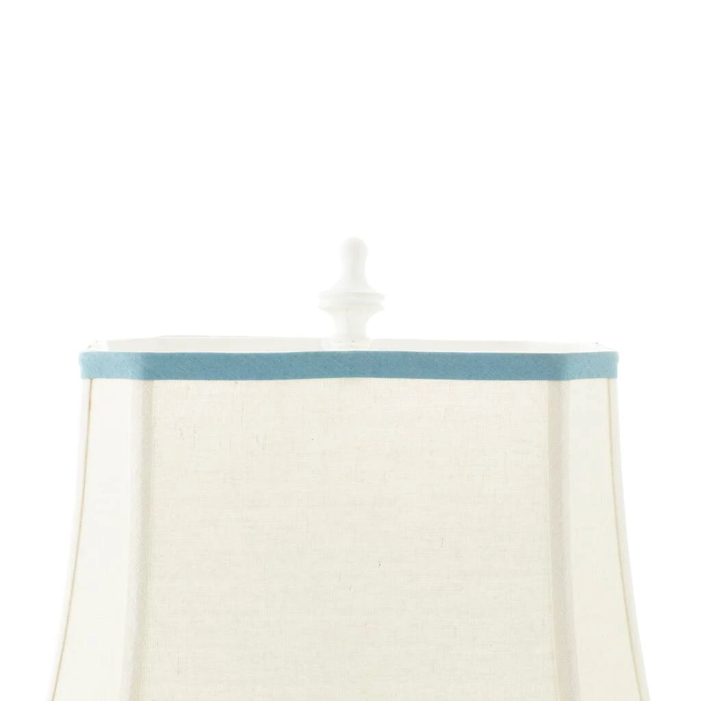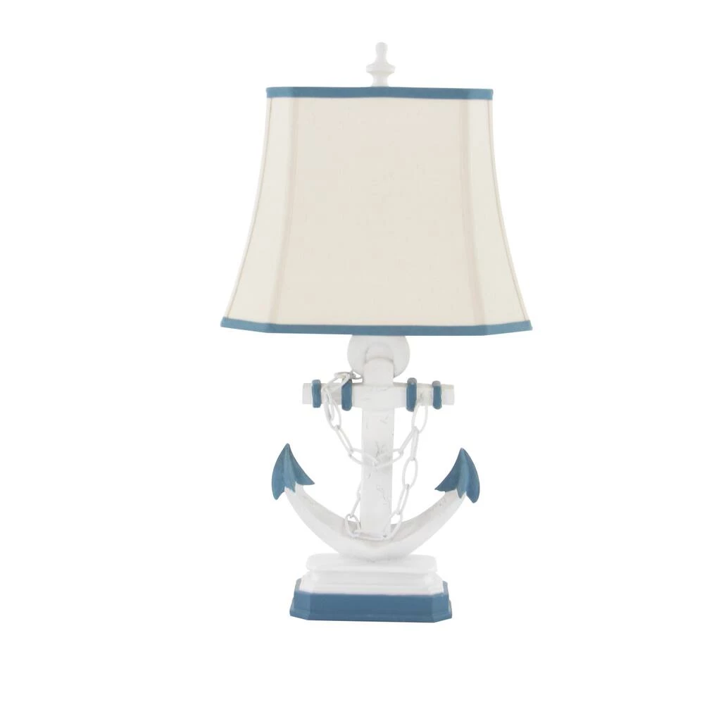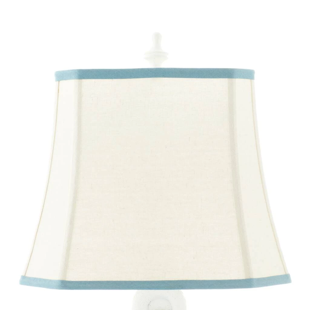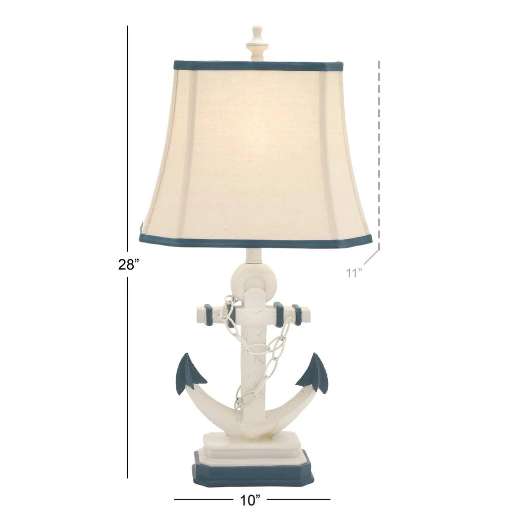 Brighten up any room to create a warming atmosphere for you and your guests with this chic table lamp. Make a statement with this unique lamp on mantle, console table or in any living space. Step up your interior design with this striking table lamp that is perfect to display on top of any accent table in your nautical-inspired lobby, living room, reading nook, kitchen, or bedroom. Requires 1 Standard Type A bulb, not included. Cord length is 65 inches. Suitable for indoor use only. Item features a square tapered shade with blue trims and measures 15βL x 11βH.Comes with an on/off switch. Nautical style. This item ships in one carton.