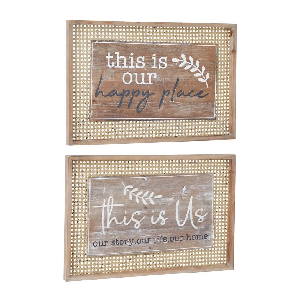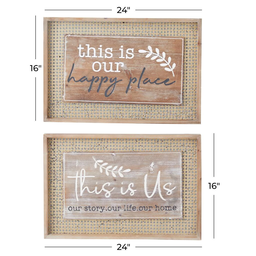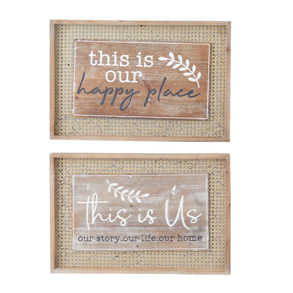 Create an excellent focal point on your walls paired with some cute accent tables, and level up your home with this amazing wood wall decor. A great centerpiece over your sofa, mantel, dining table, or bed, it brings a piece of your personality to your home. Display these as standalone or as set of refreshing wall art on your vanilla-painted walls. This set include 2 wood wall decor pieces. Farmhouse-themed style. These wall decor highlight lettered “this is our happy place” and “this is us”. Easy to hang with nail or screw via sawtooth hardware on the back. This item comes shipped in one carton.