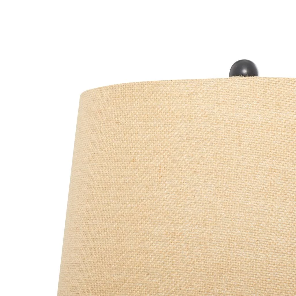 Brighten up any room to create a warming atmosphere for you and your guests with this chic table lamp. Make a statement with this unique lamp on mantle, console table or in any living space. This table lamp is a stylish and polished accent piece for your home and an efficient source of ambient lighting. A socket for a medium-sized E26 bulb. Cord length is 78 inches. Suitable for indoor use only. Brown drum linen shade with 15βL x 10βH measurements, and has subtle line pattern and spider/harp fitter. Comes with an on/off switch. Rustic design. This item ships in one carton.