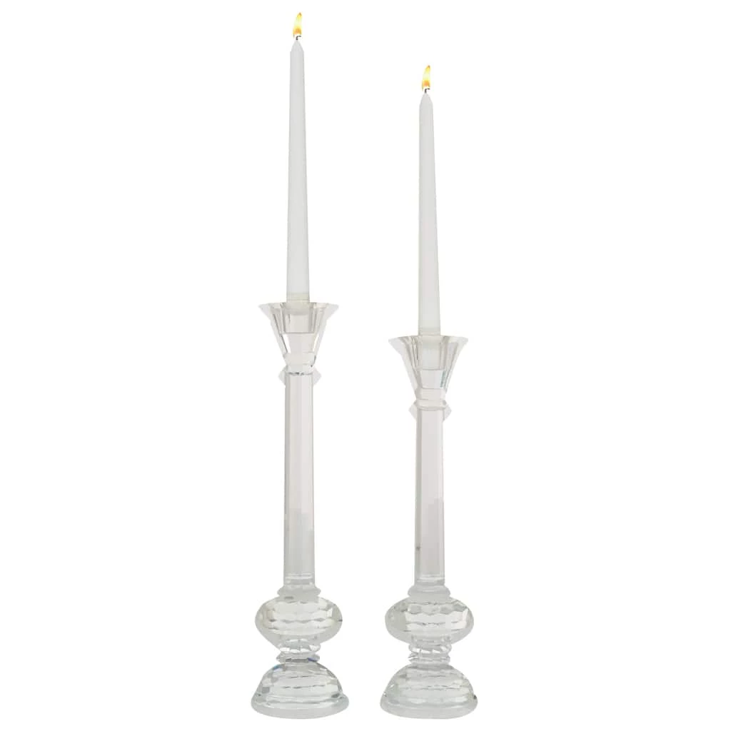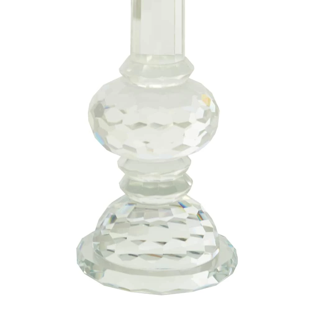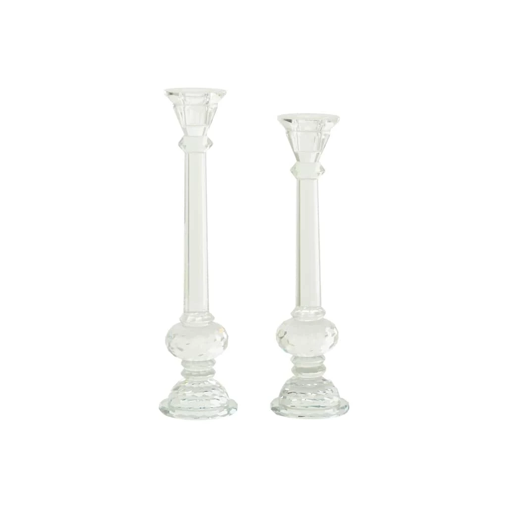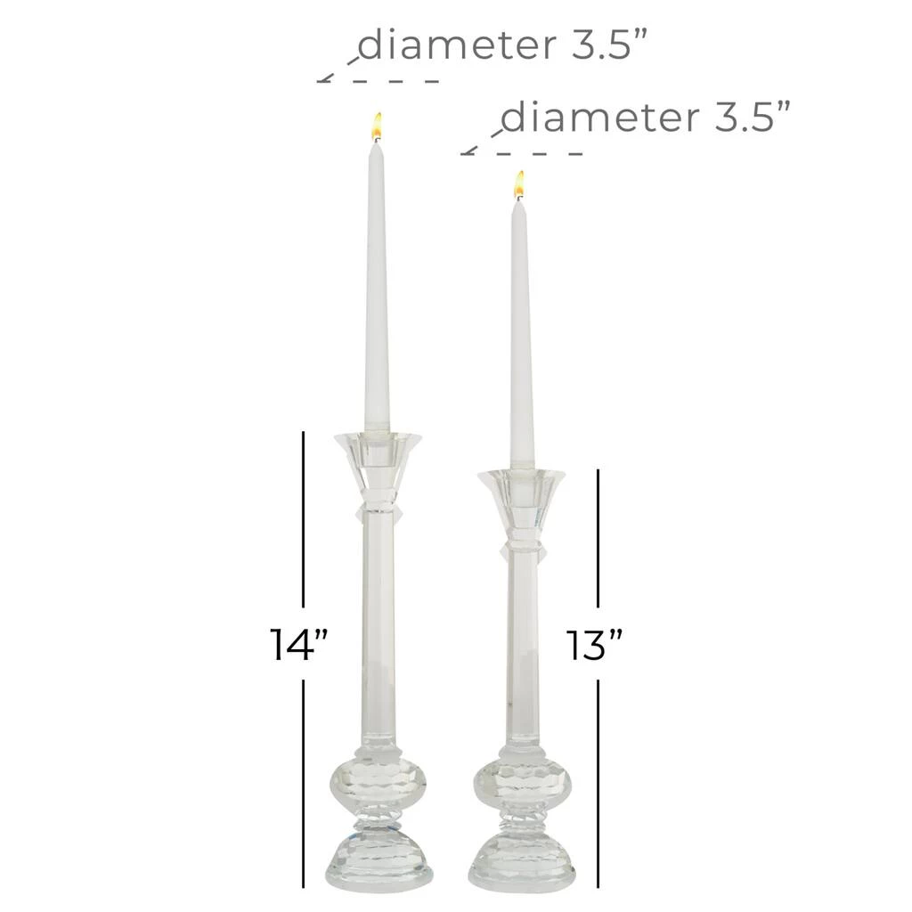 Candle holders can also function as centerpieces in your living room or in entryway. Delight your guests and make any occasion extra special by adding a lighted or flameless candle to this candle holder centerpiece. Made with a sturdy base, it is perfect for creating an elegant atmosphere at your table top or mantel. Each taper candle holder can accommodate 1 candle. This item comes shipped in one carton. Suitable for indoor use only. This is a two-piece candle holder set. Glam inspired.