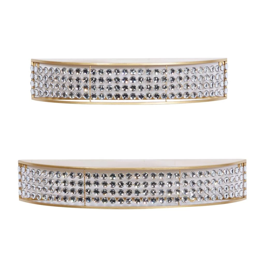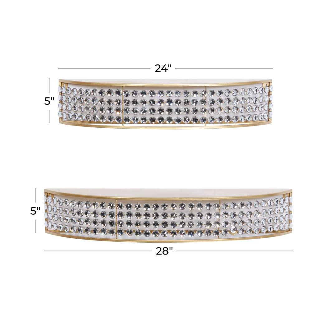 Organizing isn’t boring when you have amazing wall shelves to fill. Whether used as a focal point, or to display your favorite things, this wall shelf it the perfect addition to any home. Display as sophisticated standalone or set of 2 wall shelf. This item comes shipped in one carton. Easily hanging using hanging hardware on the back. Suitable for indoor use only. Holds up to 20 lbs. This set comes in 2 curved wall shelves. This 2-set wall shelf features an individual shelving design with an inner height of 5″, inner length of 28″, and inner width of 7″. Contemporary design.