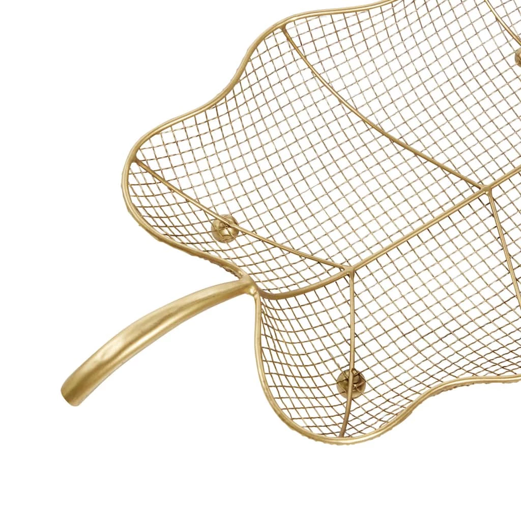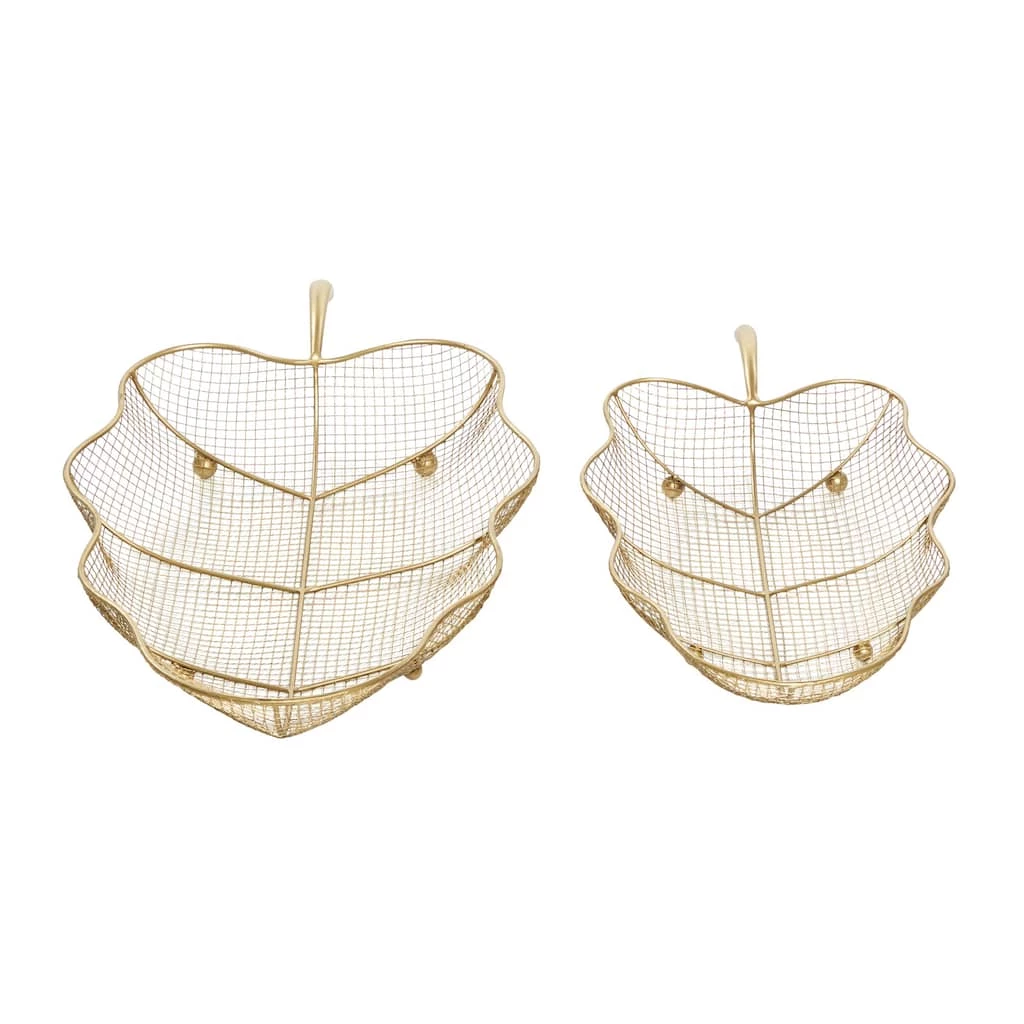 Give your home spaces a dash of gold with these eclectic leaf shaped metal basket trays. Each tray flaunts a leaf-shaped metal frame, wire mesh base, and handle with three small orb stands, all in full gold finish. Use as individual or set of serving trays or as decor holders on your coffee, console, and kitchen tables, these decorative basket trays sure are chic additions to your contemporary and traditional home spaces. Please note that this item is for decorative purpose use only and are not food safe. This item ships in one carton. Traditional style.