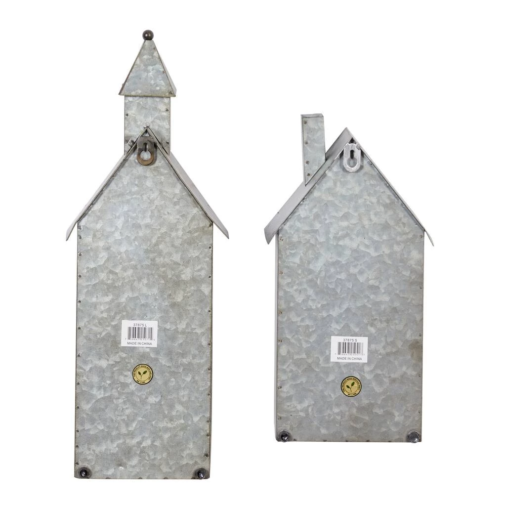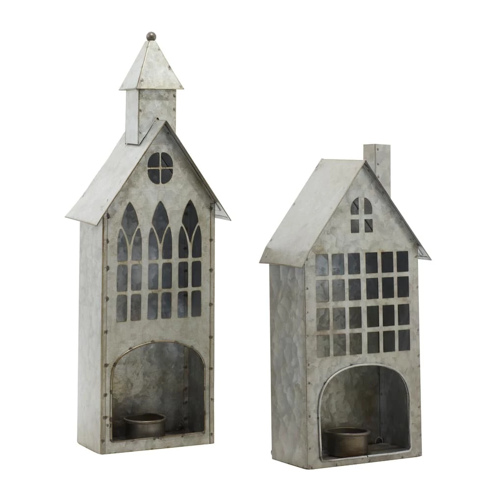 Place on tables or hang on walls with the keyhole hangers at the back. Delight your guests and make any occasion extra special by adding a lighted or flameless candle to this candle holder centerpiece. Made with a sturdy base, it is perfect for creating an elegant atmosphere at your table top or mantel. This item comes shipped in one carton. Each candle holder features metal keyhole backing for easy hang. Suitable for indoor use only. This is a set of 2 metal votive candle holders. Farmhouse-themed style. Each tea light style candle holder can accommodate 1 tea light candle.