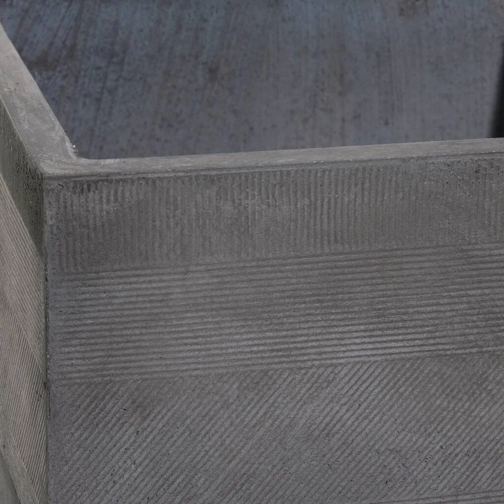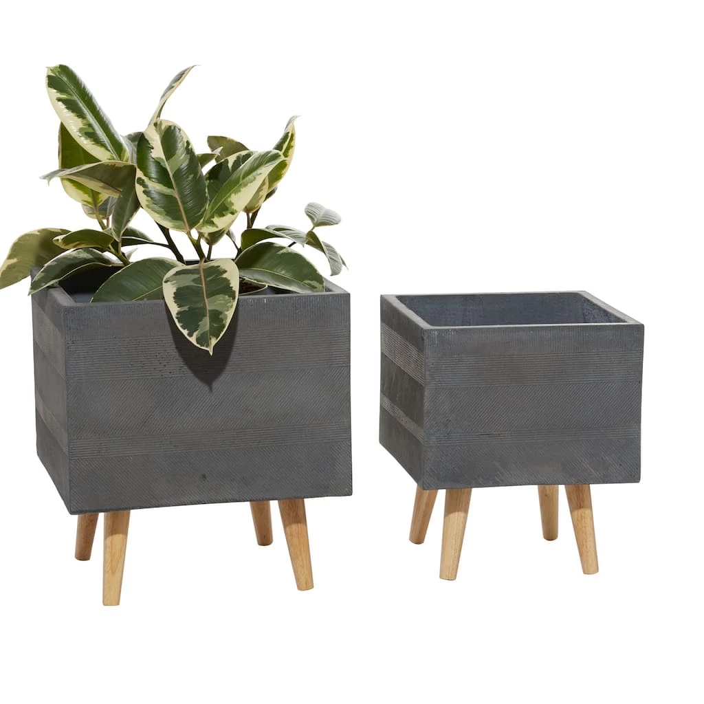 Verdant plants and flowering shrubs provide serene respite in these hectic times. And they need the proper holder to maintain a home’s theme. This set of two planters, crafted from fiber clay with matte dark grey finish on the square bodies, elevates the look of modern and contemporary-style homes and gardens. Place leafy plants and flowering shrubs to highlight the trendy style of gardens, patios, and indoor/outdoor spaces. Great additions to gardens, patios, and outdoor spaces with a modern and contemporary theme Wipe clean with a dry cloth. Suitable for indoor and outdoor use. Made in China. Pots do not have drainage holes. These planters come as a set of two. Contemporary design. This item comes shipped in one carton.