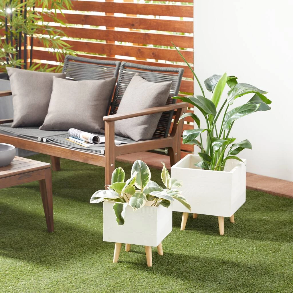 Verdant plants and flowering shrubs provide serene respite in these hectic times. And they need the proper holder to maintain a home’s theme. This set of two planters, crafted from fiber clay with matte white finish on the square bodies, elevates the look of modern and contemporary-style homes and gardens. Place leafy plants and flowering shrubs to highlight the trendy style of gardens, patios, and indoor/outdoor spaces. Great additions to gardens, patios, and outdoor spaces with a modern and contemporary theme Wipe clean with a dry cloth. Suitable for indoor and outdoor use Pots do not have drainage holes. These red indoor planters come as a set of 2. Contemporary design. This item comes shipped in one carton.