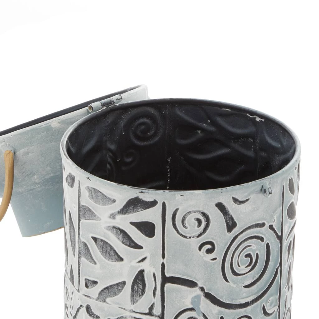 Use the differences in height of the vases in this 3-in-1 set for freestyle farmhouse and boho chic interior designing. The intricate details on the bodies match with color, pattern, and texture of such themes. Use them as flower arrangement containers, small decor storage solutions, and stand-alone accent pieces on top of dressers, side and center tables, and shelves. They carry the old milk canister silhouette for a classic design. . Suitable for indoor use only. Vases do not have drainage holes. Blue cylindrical vases featuring round 3. 80βD, 3. 30βD, and 3. 10βD mouth openings. Each set comes with 3 blue cylindrical vases with lids. This item comes shipped in one carton.