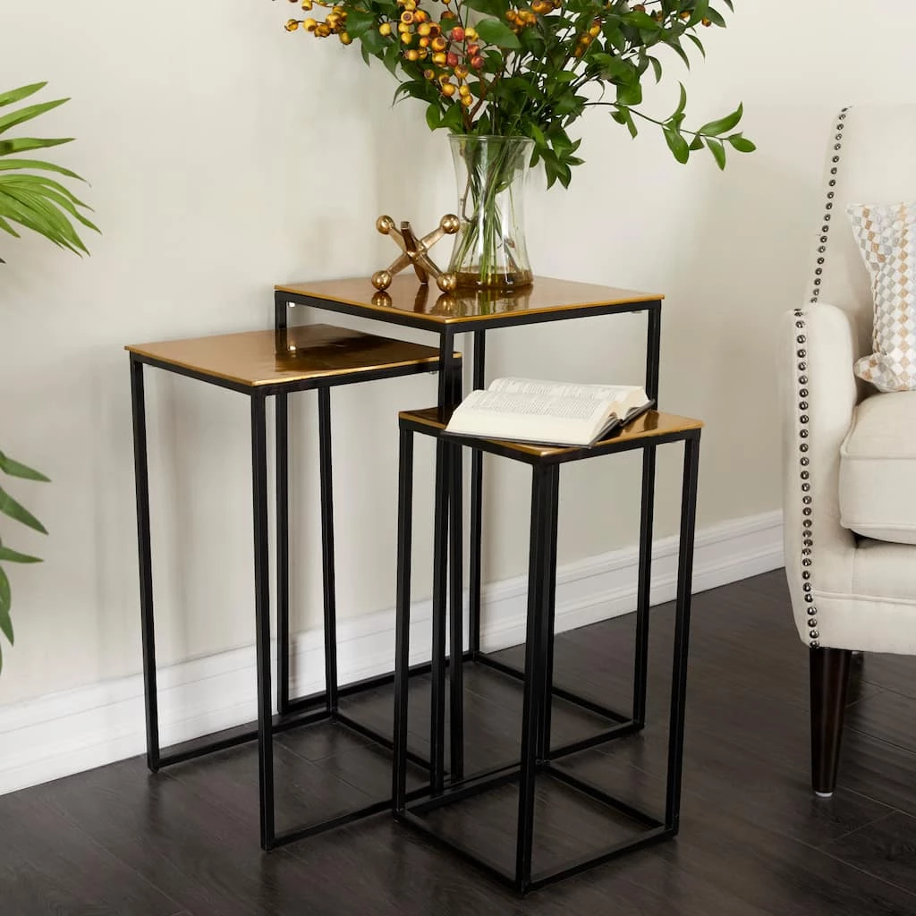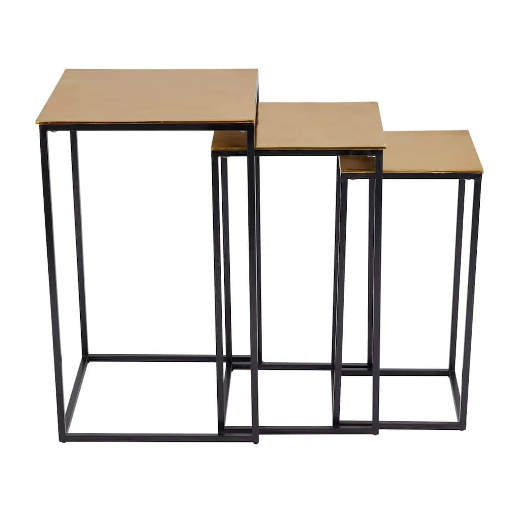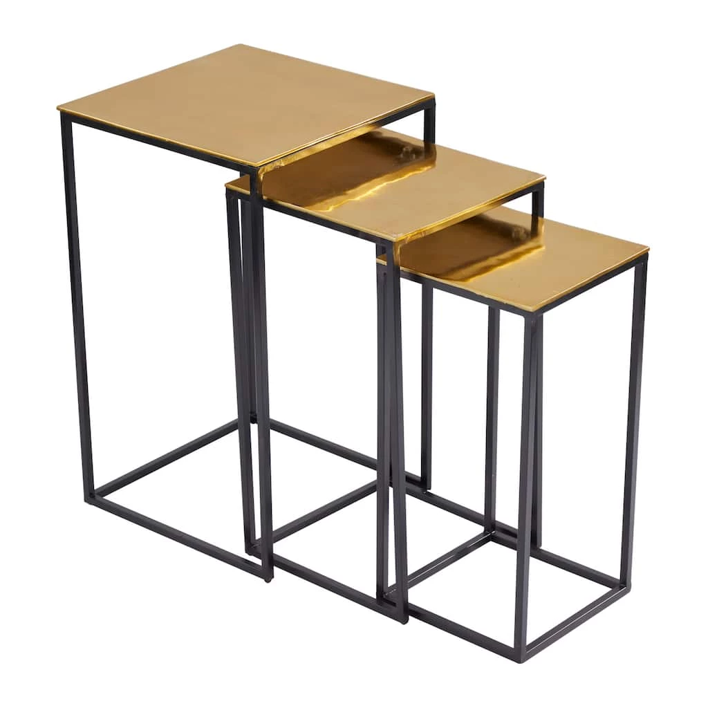 Bring a finishing touch to your home with an inviting appeal with this beautifully crafted accent table. A compact friendly table providing you with additional surface storage space any where in your home. Throw in candles or a vase with freshly cut flowers to complement these set of sophisticated accent furniture as a side, end, or coffee tables for your interior home space. This item ships in 1 carton. Suitable for indoor use only. Maximum weight limit is 250 lbs.. Made in India. Set of 3 square nesting tables. Glam design.