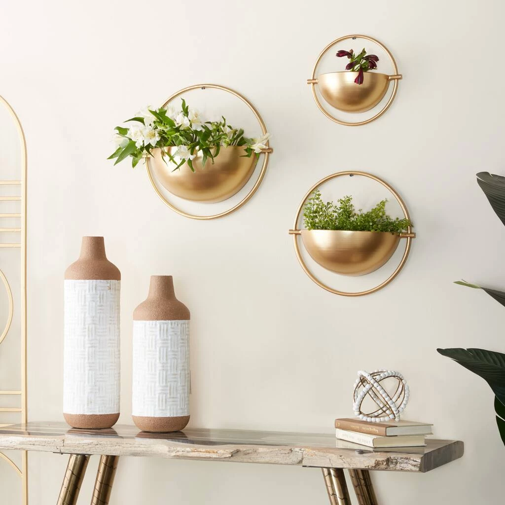 Bring nature into your space with this round wall planter set that provides a fresh and minimalist look to the interior or exterior of your home. Enhance the mood and the look of your room with some plants in these beautifully designed planter. Add some greenery into your living space for a refreshing look with a comforting element and better air quality in your home. This item comes shipped in one carton. Items come with metal hardware at the back for easy and secure hang. Suitable for indoor and outdoor use. Pots do not have drainage holes. This set comes with 3 metal wall planters. Contemporary Design.