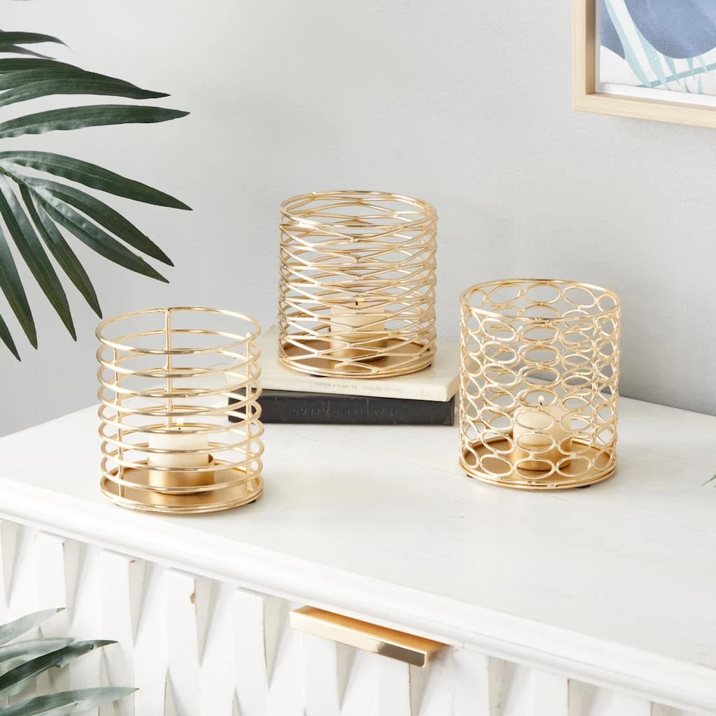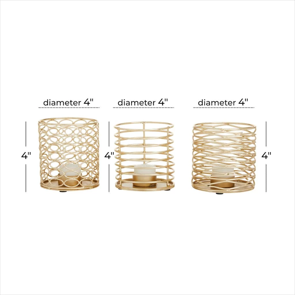 Display these geometric votive candle holders as a set piece and place them near windows with plenty of natural light for an added touch of golden glow Delight your guests and make any occasion extra special by adding a lighted or flameless candle to this candle holder centerpiece. Made with a sturdy base, it is perfect for creating an elegant atmosphere at your table top or mantel. Designed with black rubber stoppers at the base that prevent scratching furniture and table tops, as well as sliding around. These votive candle holders can hold one candle each. This item comes shipped in one carton. Made in India. These candle holders come as a set of 3. Glam style. Suitable for indoor use.