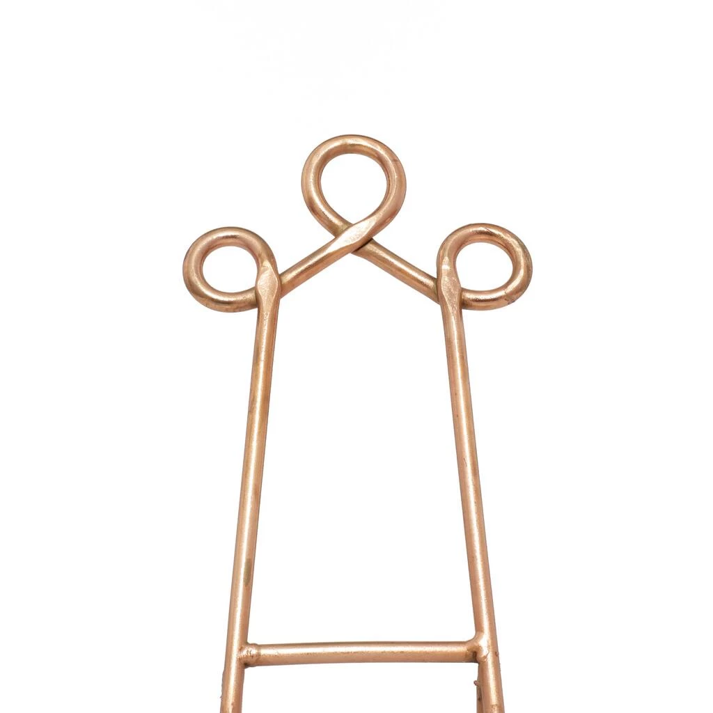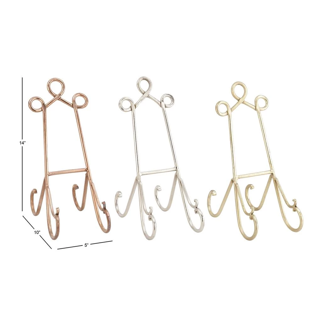 Having these traditional style inspired metal easels in your home will make picture frame or artwork displaying on table or shelves a lot less taxing on your time, plus they are stylish easy to work with. Display your favorite art, favorite plates, or even favorite recipes on this display easel. Durable and sturdy, this easel lets you display your favorite things with ease, and with out overshadowing your piece. This item comes shipped in one carton. Suitable for indoor use only. Made in India. This set includes 3 metal easels. Traditional theme. Item has max weight of 5 lbs.