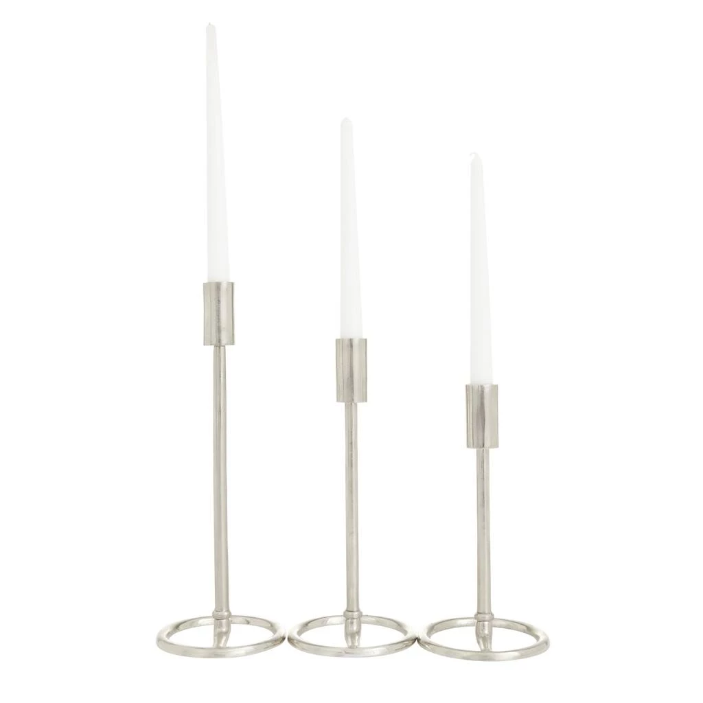 Wholesale π― Set of 3 Silver Aluminum Contemporary Candle Holders, 14″ x 5″ x 5″ by Ivory and Iris π