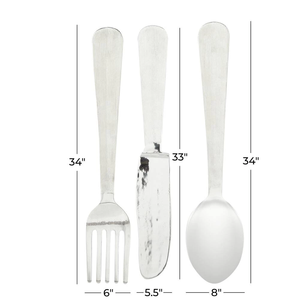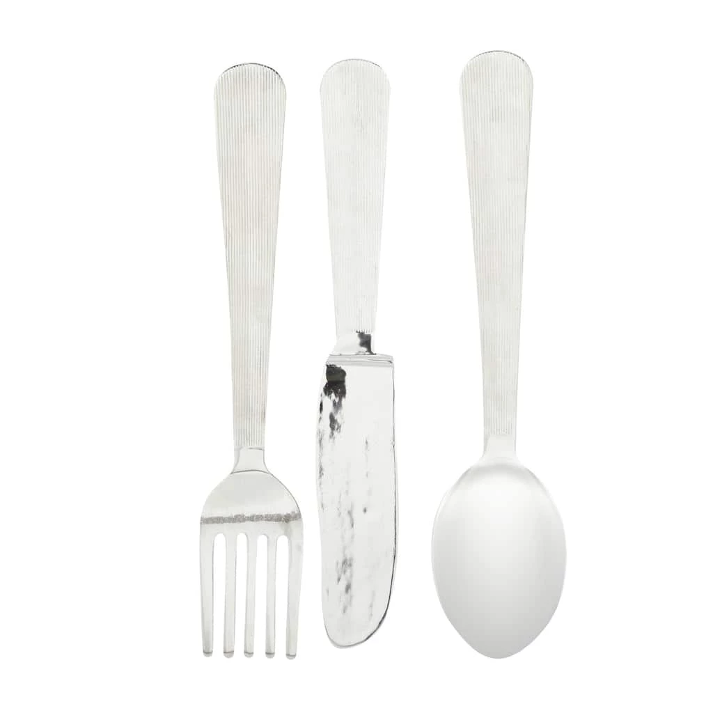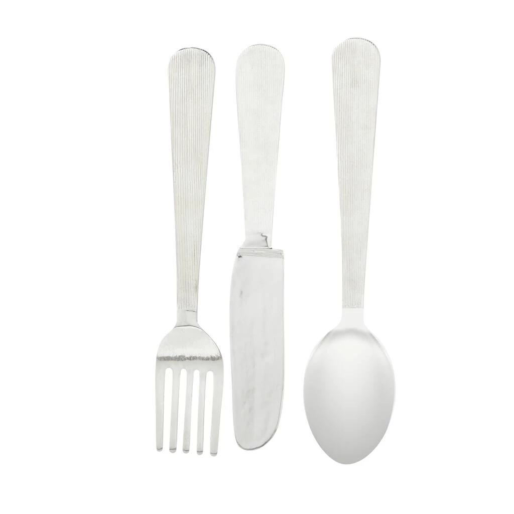 This kitchen utensil wall decor create an playful display with an inviting look for a unique wall decoration. Create an excellent focal point on your walls paired with some cute accent tables, and level up your home with this amazing wall Decor. Place this on any blank wall space adding both texture and depth to your home. This item comes shipped in one carton. The aluminum material is welded to form shapes of different kitchen utensils. Items come with metal hardware at the back for easy and secure hang. Suitable for indoor use only. Made in India. This set features 3 kitchen utensil sculptures. Contemporary Design.