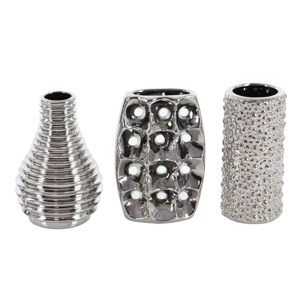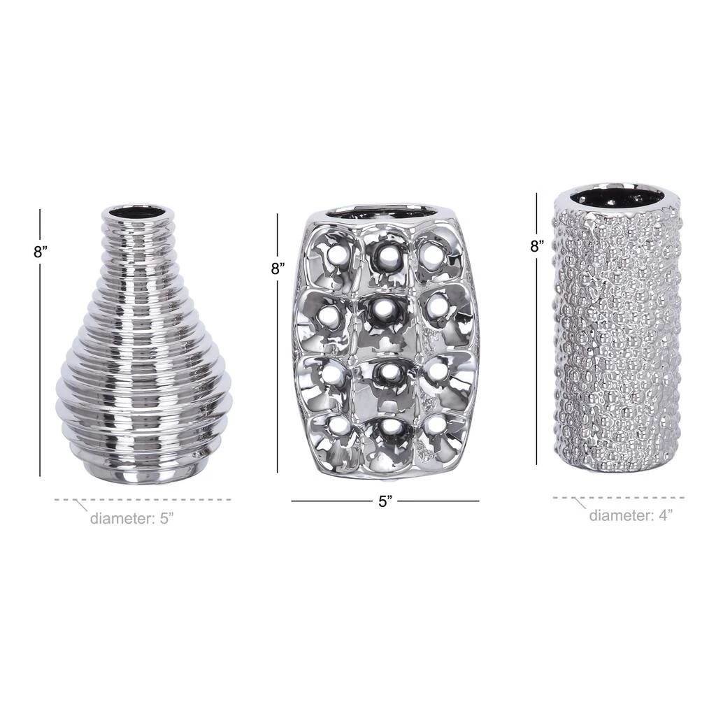 Coupon β€οΈ Set of 3 Silver Ceramic Glam Vase, 8″ x 5″ by Ivory and Iris π