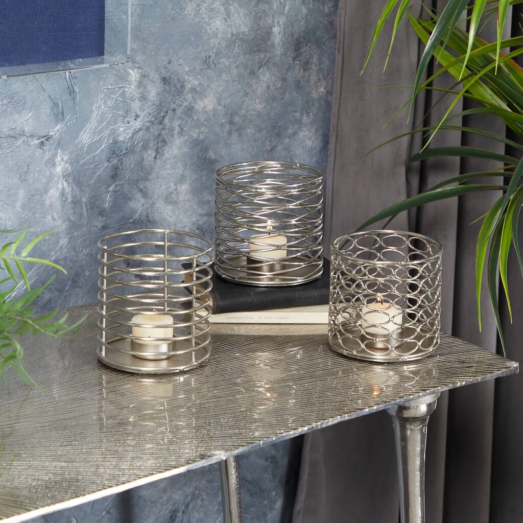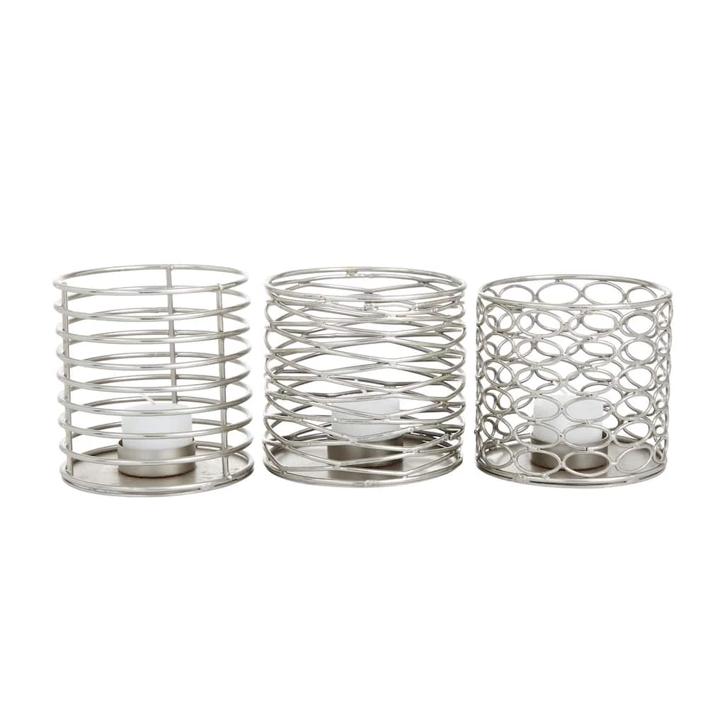Cheapest β Set of 3 Silver Iron Modern Candle Holders, 4″ x 4″ x 4″ by Ivory and Iris π