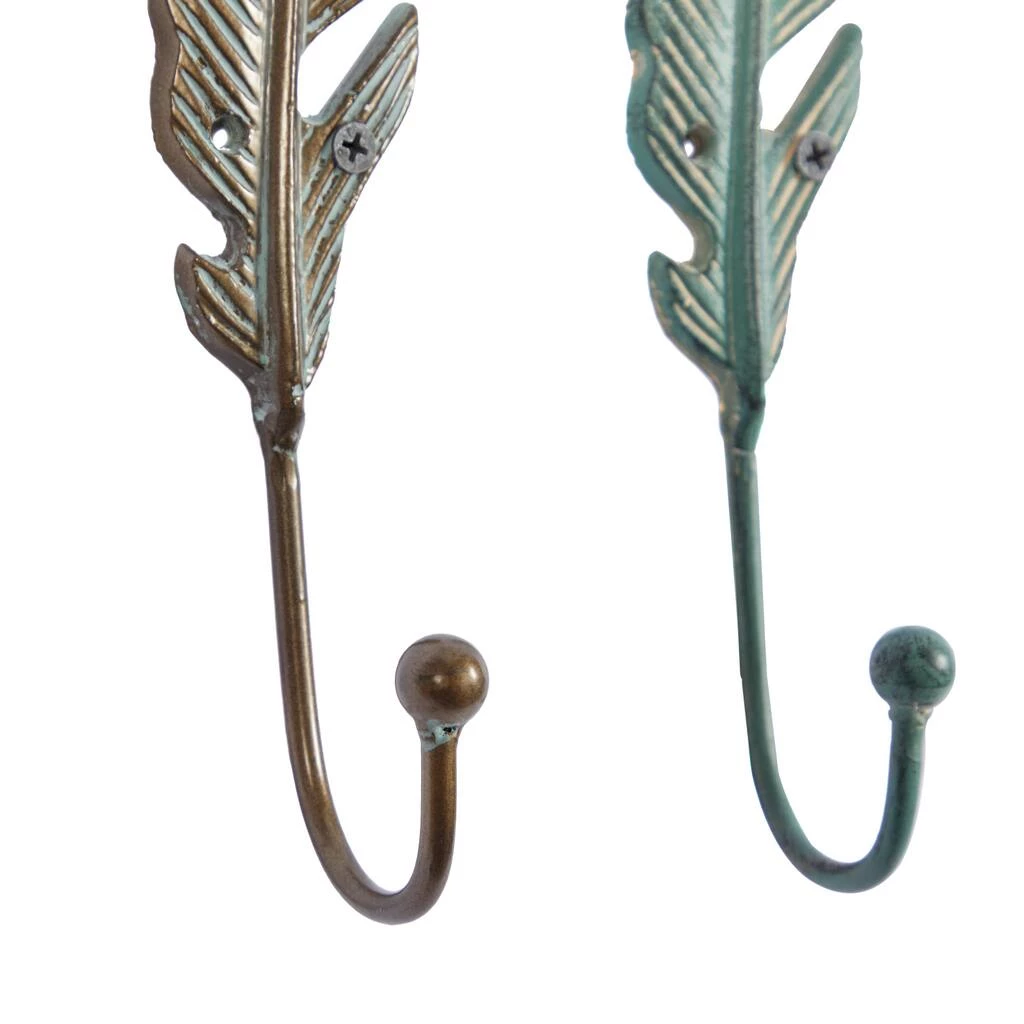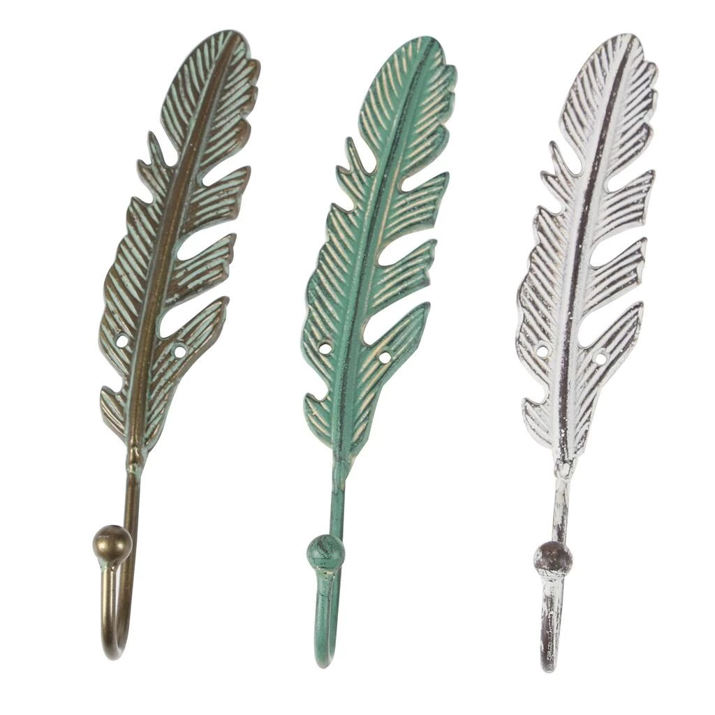 Treat your boho or vintage inspired living space with not just one, but with this 3-piece assorted vintage style multi-colored distressed metal wall hook set. These unique set poses a beauty coming from its vintage charm thanks to the distressed multi-colored beauty it offers. These wall hooks are feather inspired so they feature its accurate representation complete with quill and barbs. The metal hook extends from the tip of the quill which forms the curved shape and is tipped with a small spherical figure to dull the otherwise sharp tip. This piece will go excellently on any wall in any room of the house. This item comes shipped in one carton. Easy to hang with holes for nails or screws. Suitable for indoor use only. Each hook holds 5 to 8 lbs. Set includes 3 cast iron feather hooks. Eclectic design.