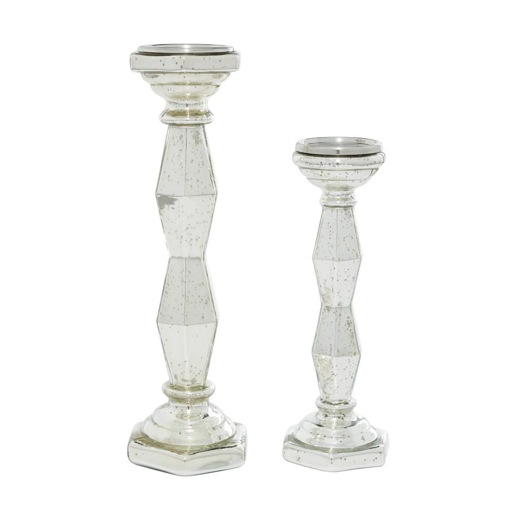 No matter where you place them in your home, these candle holders are hard to miss. They feature a tall, slim construction paired with a reflective design. When you want to invoke a dazzling, vintage feel throughout a room, these candlestick holders are a smart addition. Each holder has a 5″ base, making it easy to position them on small end tables or the corners of a desk. Each pillar candle holder can accommodate 1 votive or pillar candle.