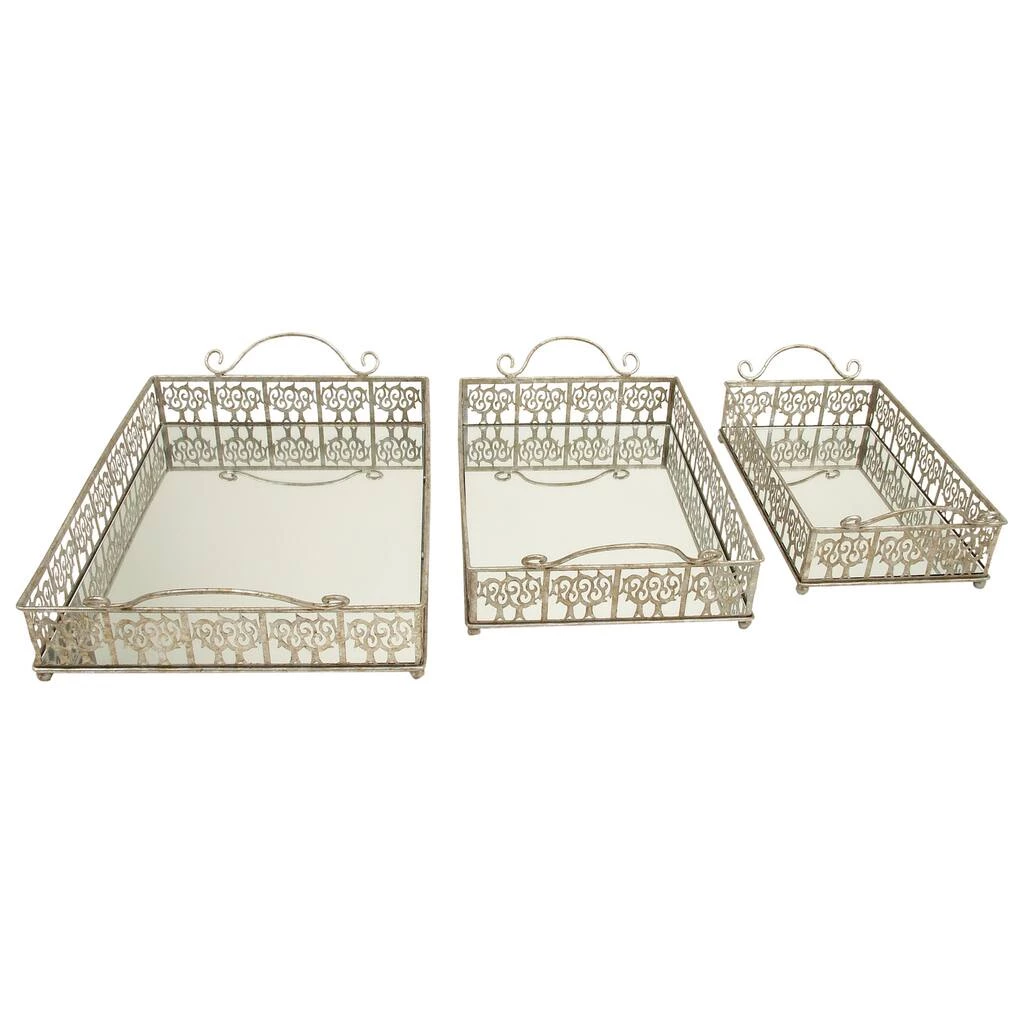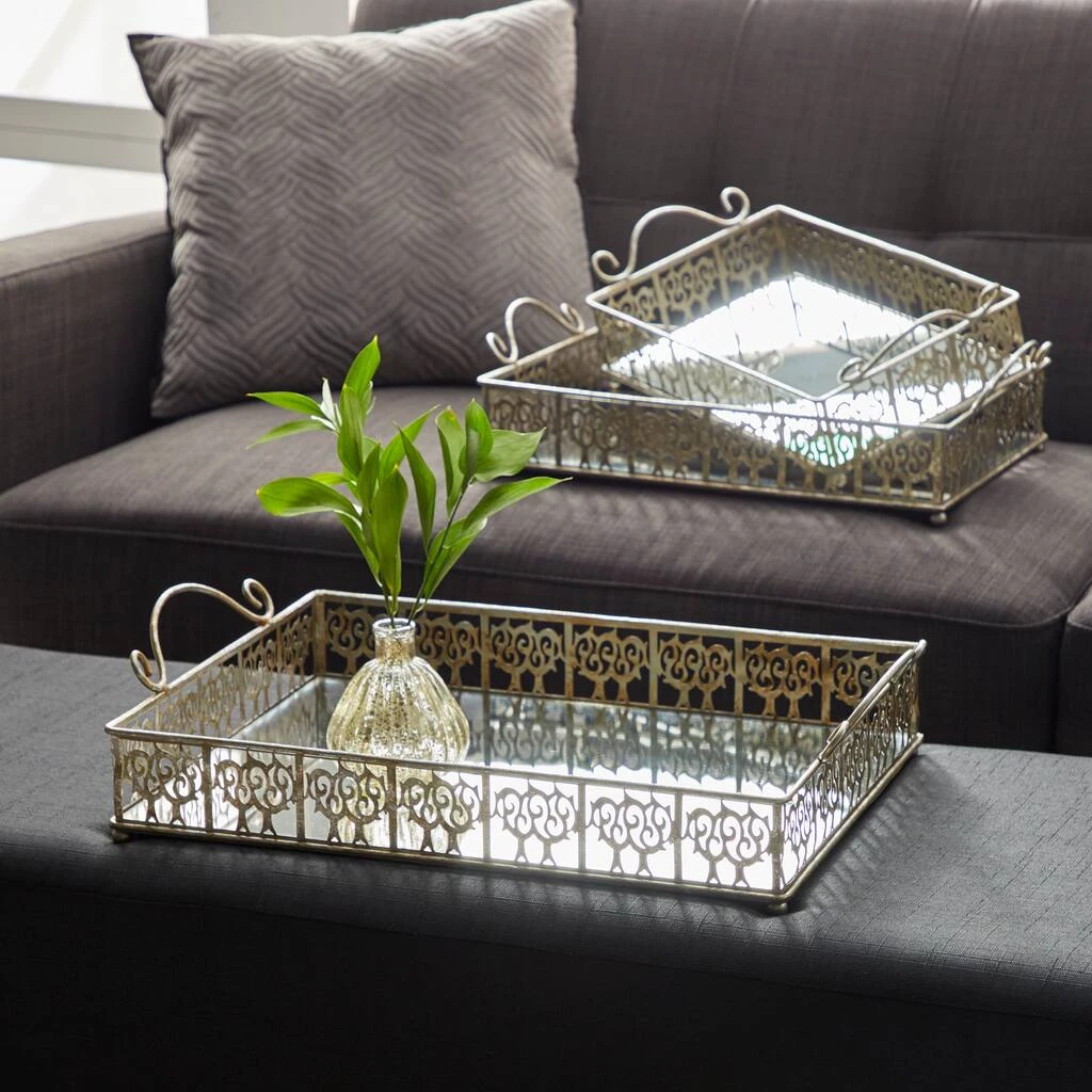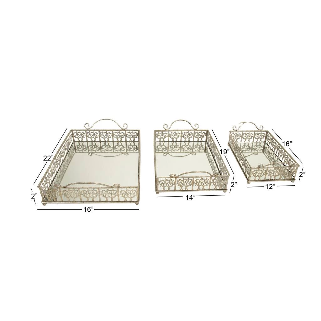 These glass mirror trays are ideal as decorative tray additions for shelves, coffee tables, the dining area, and the living room. Whether in your kitchen, or on your coffee table, they are a great way to display and store your favorite things. These trays are perfect storage pieces that are spacious for your trinkets or decorative goods on your mantle, coffee table or kitchen counter. Designed with ball leg stoppers at the base that prevent scratching furniture and tabletops, as well asl sliding around. This set comes shipped in one carton. Please note that this item is for decorative purpose use only and are not food safe.