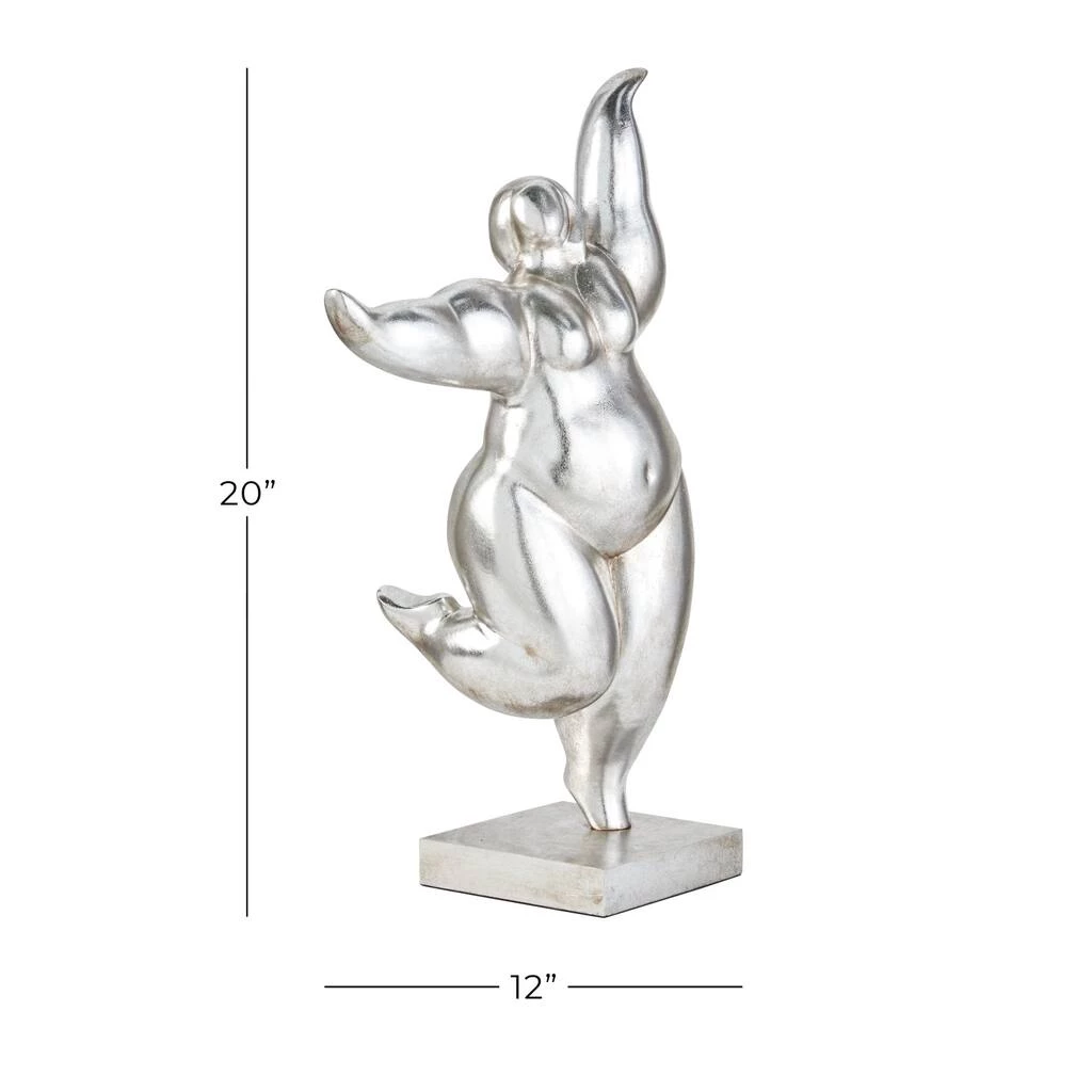 Take your home decoration to the next level with the help of this unique sculpture of a dancing woman. The modern look of this statue will bring an interesting appeal to any contemporary and modern styled spaces. Accent piece made of polystone, this beautiful statue features an impressive polished silver paint and a perfect square base. This dancing woman sculpture will enhance your home with a perfect mix of form and function. The sculpture is one-of-a-kind, so shape and color may vary. Use as a figurine display on top of accent tables and countertops. Wipe clean with a dry cloth. Suitable for indoor use only. Modern design. This item comes shipped in one carton.