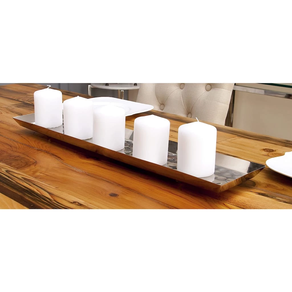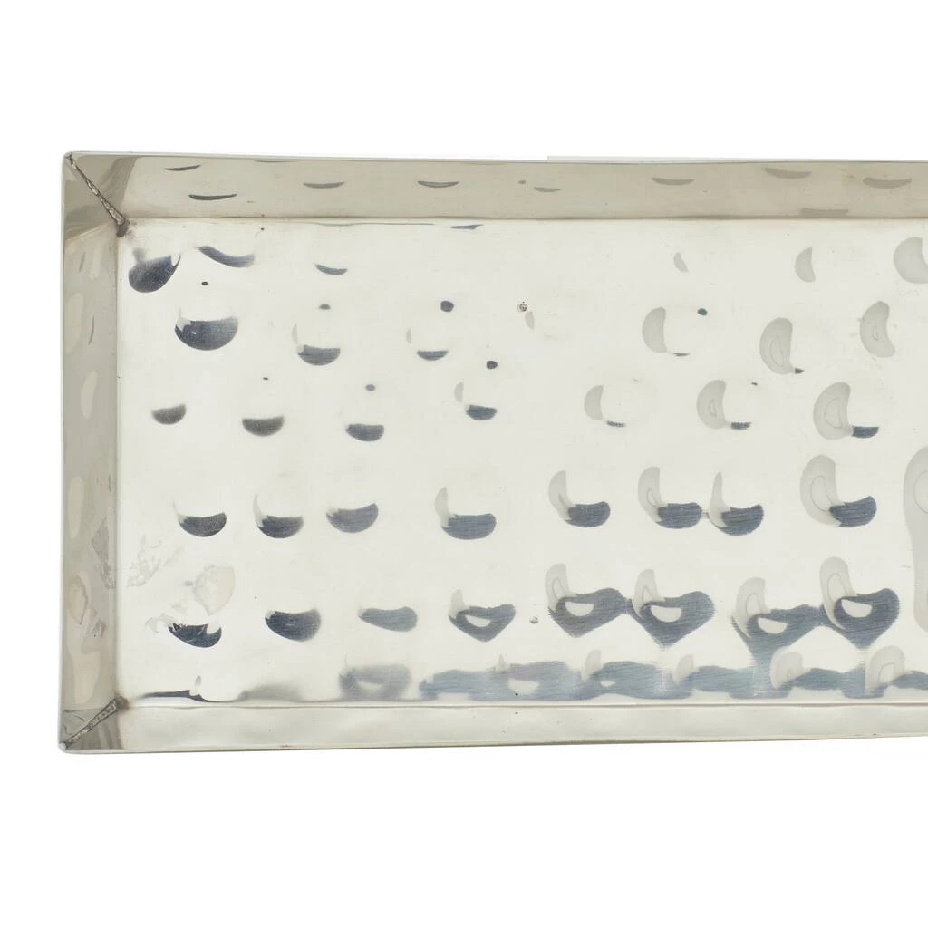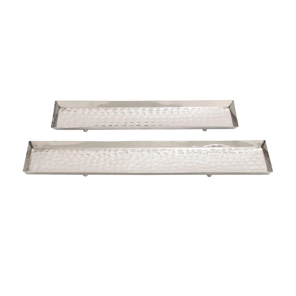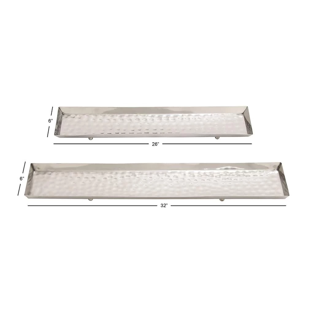 Get organizing and decorating an elegant vibe with these metallic silver trays placed in your contemporary-themed counters or console tables. Whether in your kitchen, or on your coffee table, they are a great way to display and store your favorite things. They are storage pieces that are spacious for your trinkets or decorative goods on your mantle, coffee table or kitchen counter. Each tray is designed with protective stoppers at the base that prevent scratching furniture and table tops, as well as sliding around. This set comes shipped in one carton. Please note that this item is for decorative purpose use only and are not food safe.