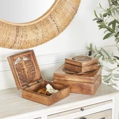 Wholesale βοΈ Natural Rectangular Brown Wooden Tree Decorative Box Set by Ivory and Iris π