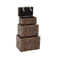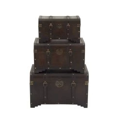 Buy π Set of 3″ Brown Wood Traditional Trunk, 28″, 24″, 20″ by Ivory and Iris π