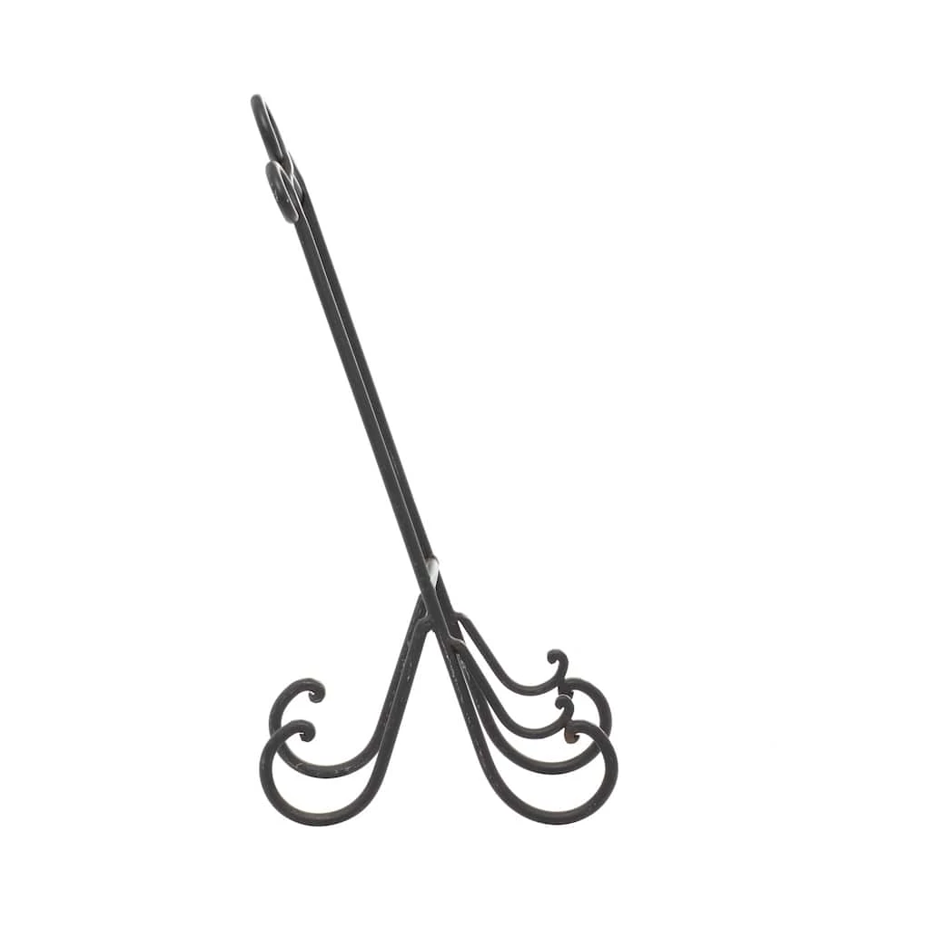 Perfect for display works of art on a mantel or end table. Put your show art, books, memorable moments and signs on display with this delicate easel. Features looped top design and curved base. This item ships in 1 carton. Put your show art, books, memorable moments and signs on display with this delicate easel. Suitable for indoor use only. Made in India. Traditional theme. Item has max weight of 5 lbs.