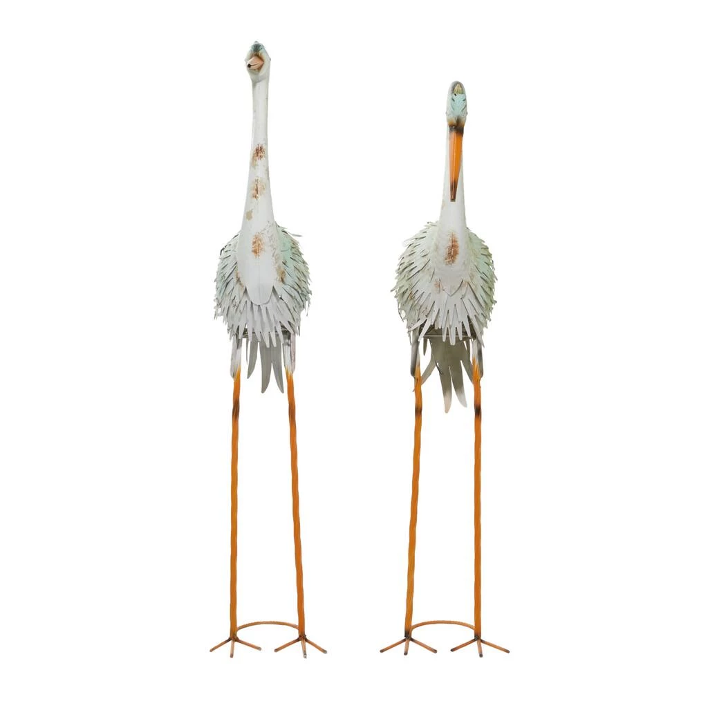 Spice up coastal flowerbeds, gardens, backyards, and lawns with this 2-in-1 iron-made crane garden statue set. It features realistic feather shapes and color gradients to catch eyes and complement outdoor garden themes. These bird statues balance on metal U-shaped stands. Keep them sturdy by staking them into the ground or by placing sandbags or big rocks on their attached bases. This dΓ©cor set makes a stunning, coastal-style addition to your garden or patio.