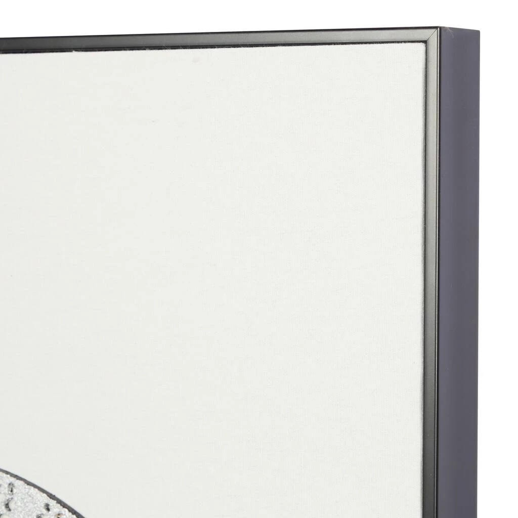 Add a vintage boho vibe to your home or office with this dimensional 3D art! Stretched white canvas displays several layered large to small round eclectic designs crafted into wheels with intricate lace patterns. The various sizes and styles have bright turquoise blue and opaque white textural bubbled finishes. This item ships in 1 carton. Due to the handmade nature of this item, no two will be alike, there will be slight differences in shape, size, and color. Easily hanging using hanging loop hardware on the back. Suitable for indoor use only. Contemporary design.