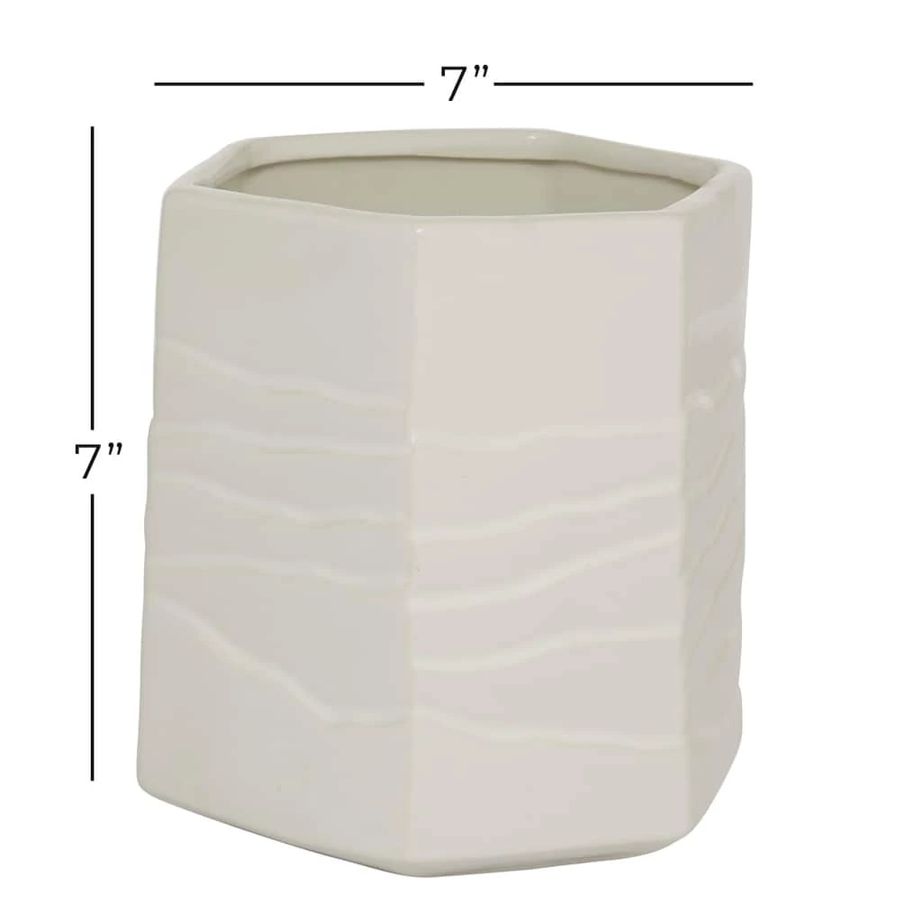 Be simple, unique, and light as a feather as you transform your minimalistic, modern, and contemporary living spaces with the addition of this stunning white ceramic vase! This focal point stunner vase features a smooth white glazed, polygon-shaped ceramic vase made of stoneware material. They are designed with a set of irregular line trace details surrounding the vase’s body. This home and office decor are great accent for living rooms, kitchens, hallways, master bedrooms, hotel rooms/front desk, and executive/corporate meeting rooms. This item ships in one carton. Suitable for indoor use only. Pot vase with wide rim opening. Contemporary design.