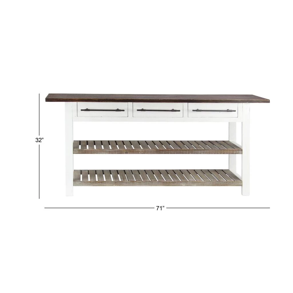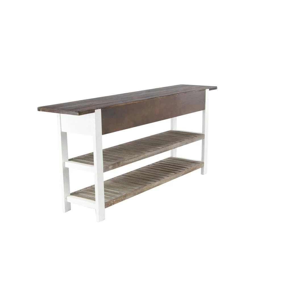 Useful and elegant, console tables are more than just a place to throw your mail. Use it as an accent piece in the living room, library, bedroom, waiting areas, or hallways of you home. Display as decorative and functional console table in your boho, country, or farmhouse themed home space. This item comes shipped in 1 carton. A rectangular console table with 3 pull-out drawers measuring 16″L x 13″W. Suitable for indoor use only. Maximum weight limit is 100 lbs., each drawer can hold up to 25 lbs., each shelf can hold up to 30 lbs. This console table features lower shelves for extra storage. Farmhouse-themed style.