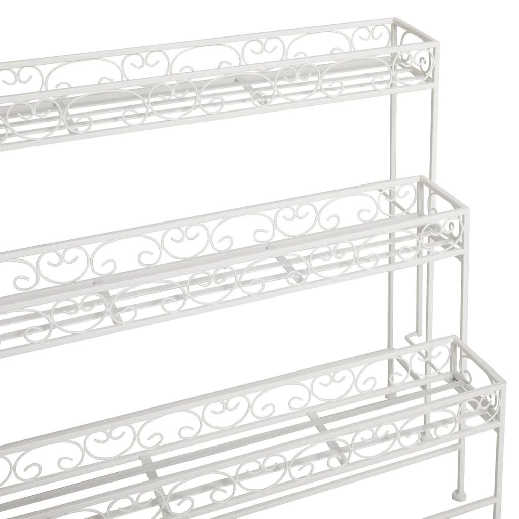 Add a dash of soft visual delight within your outdoor patios and garden areas as you decorate your corners with this 3 tier staircase plant stand. A space saving solution to store your plants in a playful yet practical way. This striking plantstand can hold your luscious greenery or display your most prized dΓ©cor for an elevated look. Designed with black rubber stoppers at the base that prevent scratching off floors and surfaces. This item comes shipped in one carton. Suitable for indoor and outdoor use. Avoid using abrasive cleaning pads or detergents, use a sponge with mild soap and warm water, then rinse with a garden hose. This plantstand is made from solid iron construction with protective coating making it impervious to the elements with anti-corrosive property. Industrial style.