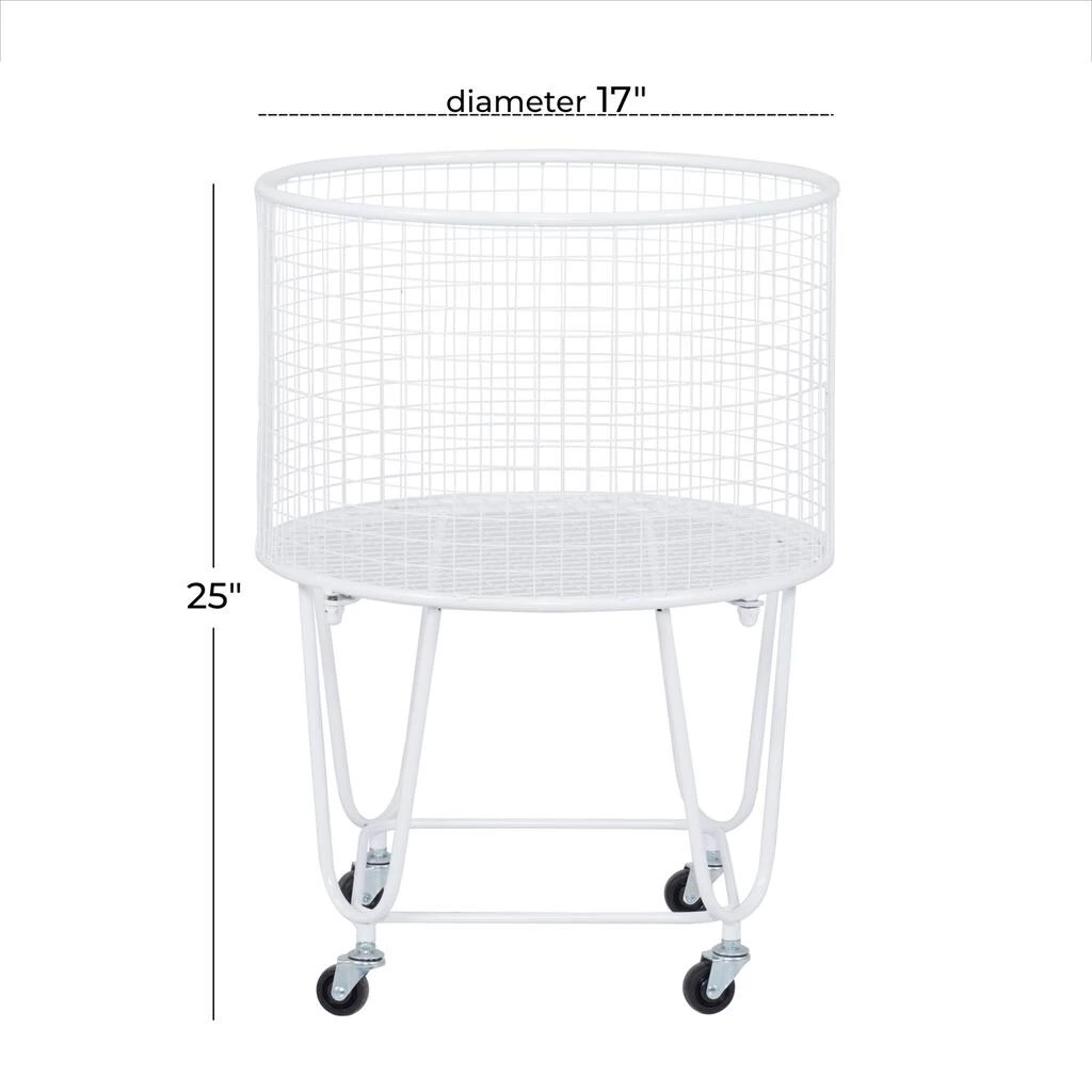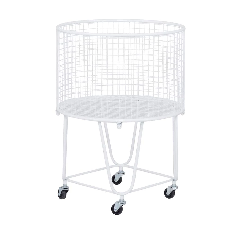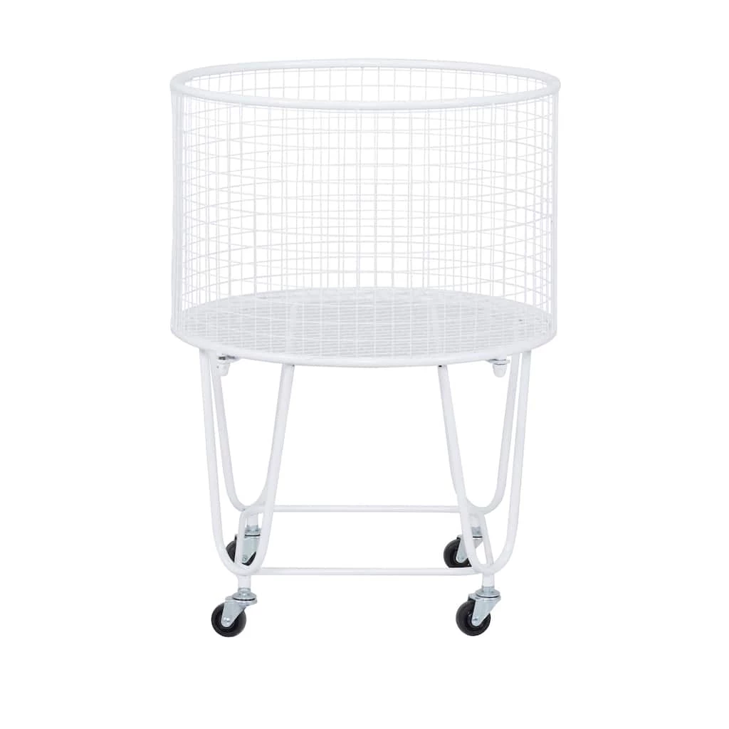 This storage cart is a refined and stunning statement piece that gives a stylish storage display in any space. Keep your space a clutter free zone with this conveniently designed storage cart. A sturdy structure with smooth caster wheels for optimal mobility. This item comes shipped in one carton. Classic style with practical design, this welded storage cart is mounted on caster wheels for optimal mobility. Suitable for indoor use only. French Country Theme. Maximum weight limit is 20 lbs.