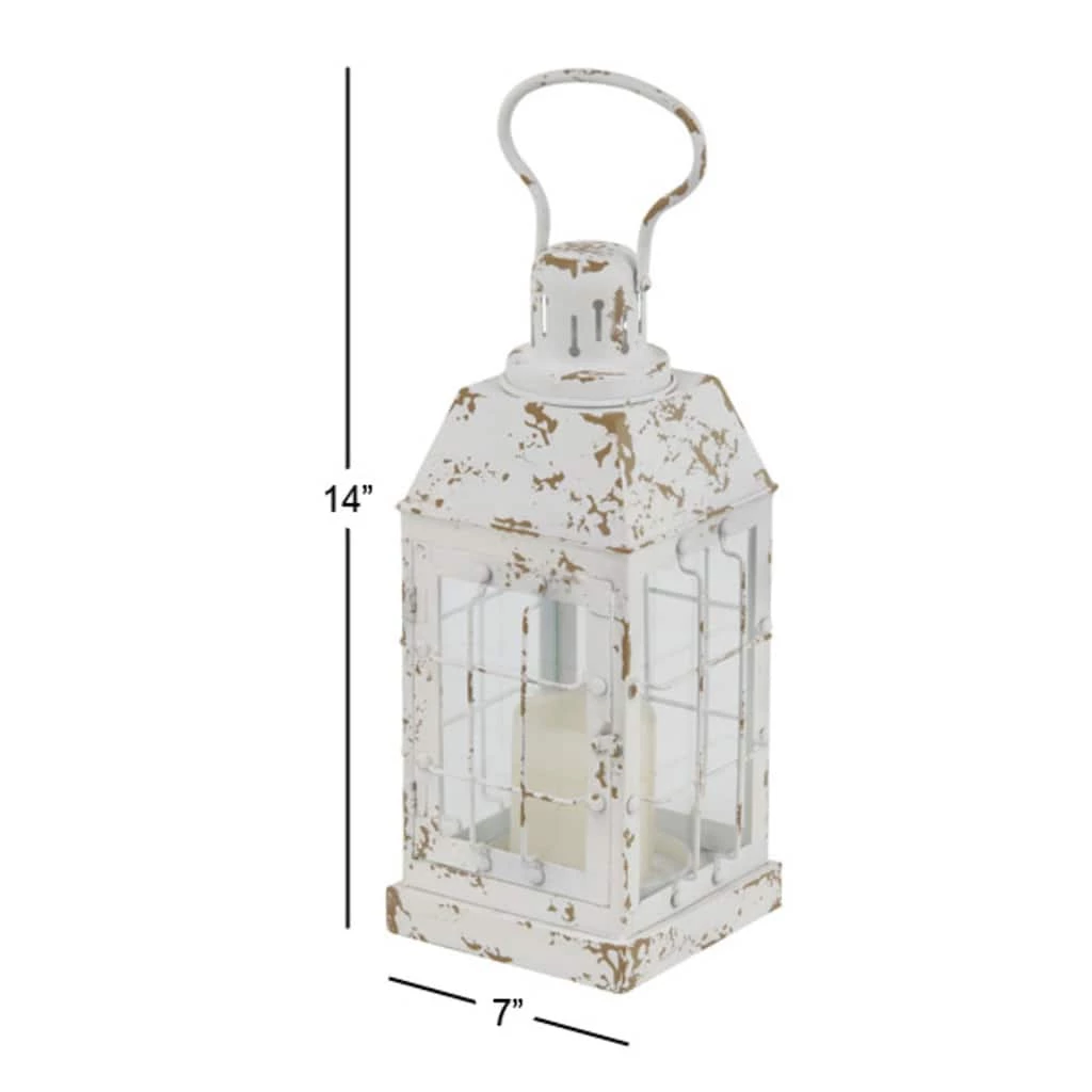 Delight your guests and make any occasion extra special by adding a lighted or flameless candle to this lantern. Made with a sturdy base, it is perfect for creating an elegant atmosphere at your table top or mantel. Display as accent piece on your console of coffee table. This item ships in 1 carton. Metal handle for easy displaying. Suitable for indoor use only. Vintage inspired. Lantern pillar candle holder with 1 pillar candle each.