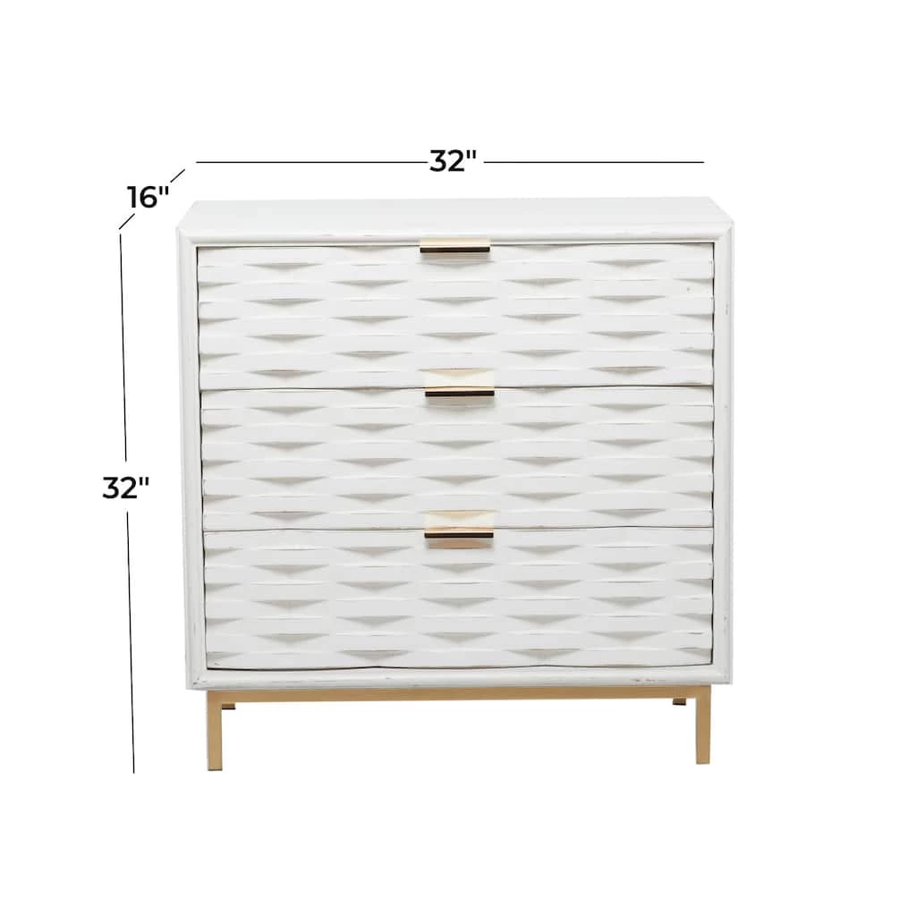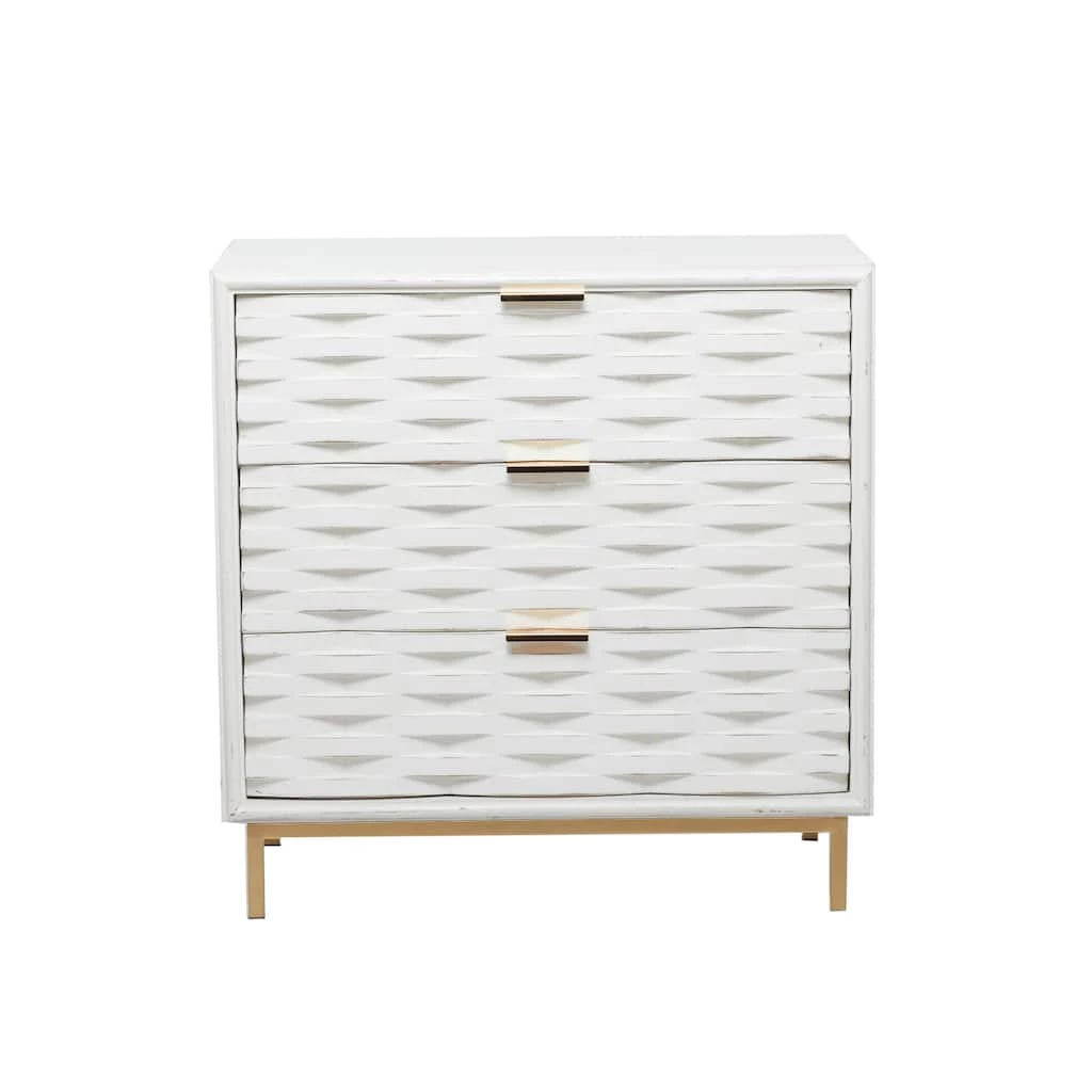 This contemporary-inspired accent chest provides you a perfect storage solution and offers a clean and comfortable living space. A practical yet stylish upgrade that instantly elevate the look of your room. Maintain a clutter free zone and stay organize with this chic cabinet. Designed with black stoppers at the base that prevent sliding around as well as scratching the floor. This accent piece features 3 rectangular drawers. Suitable for indoor use only. Maximum weight limit is 100 lbs. Contemporary Theme.