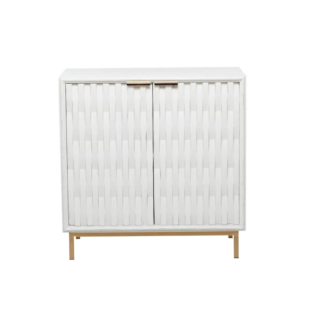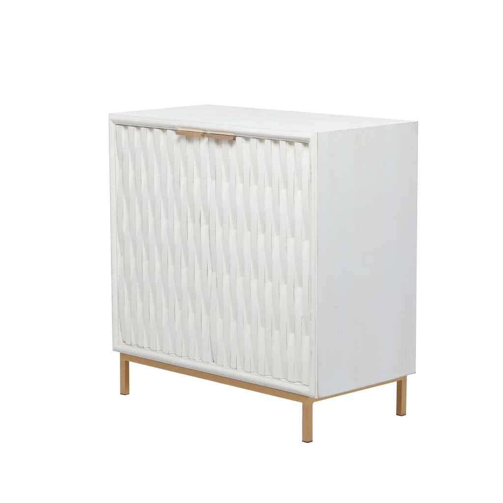 Add a charming piece of cabinet decor into your modernesque living spaces with this chic white and gold corner cabinet as you elevate its style with a framed canvas wall art or a large metal wall mirror. A practical yet stylish upgrade that instantly elevate the look of your room. Maintain a clutter free zone and stay organize with this chic cabinet. Designed with black rubber stoppers at the base that prevent scratching furniture and table tops, as well as sliding around. Suitable for indoor use. Maximum weight limit is 100 lbs. This wooden cabinet features a 2-tier shelving unit designed with magnetic doors. Contemporary style.